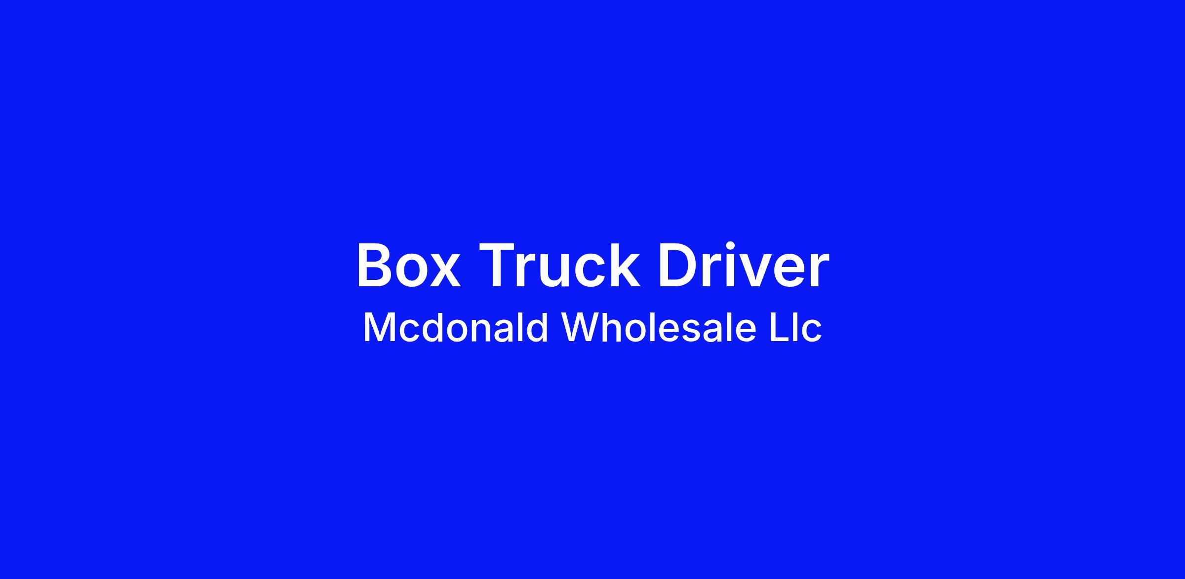 Box Truck Driver McDonald Wholesale is proud to say that we are "Oregon's largest independent food service provider". Our employees are valued, respected and appreciated for their professionalism, skills, knowledge and the diverse backgrounds they bring to McDonald Wholesale.