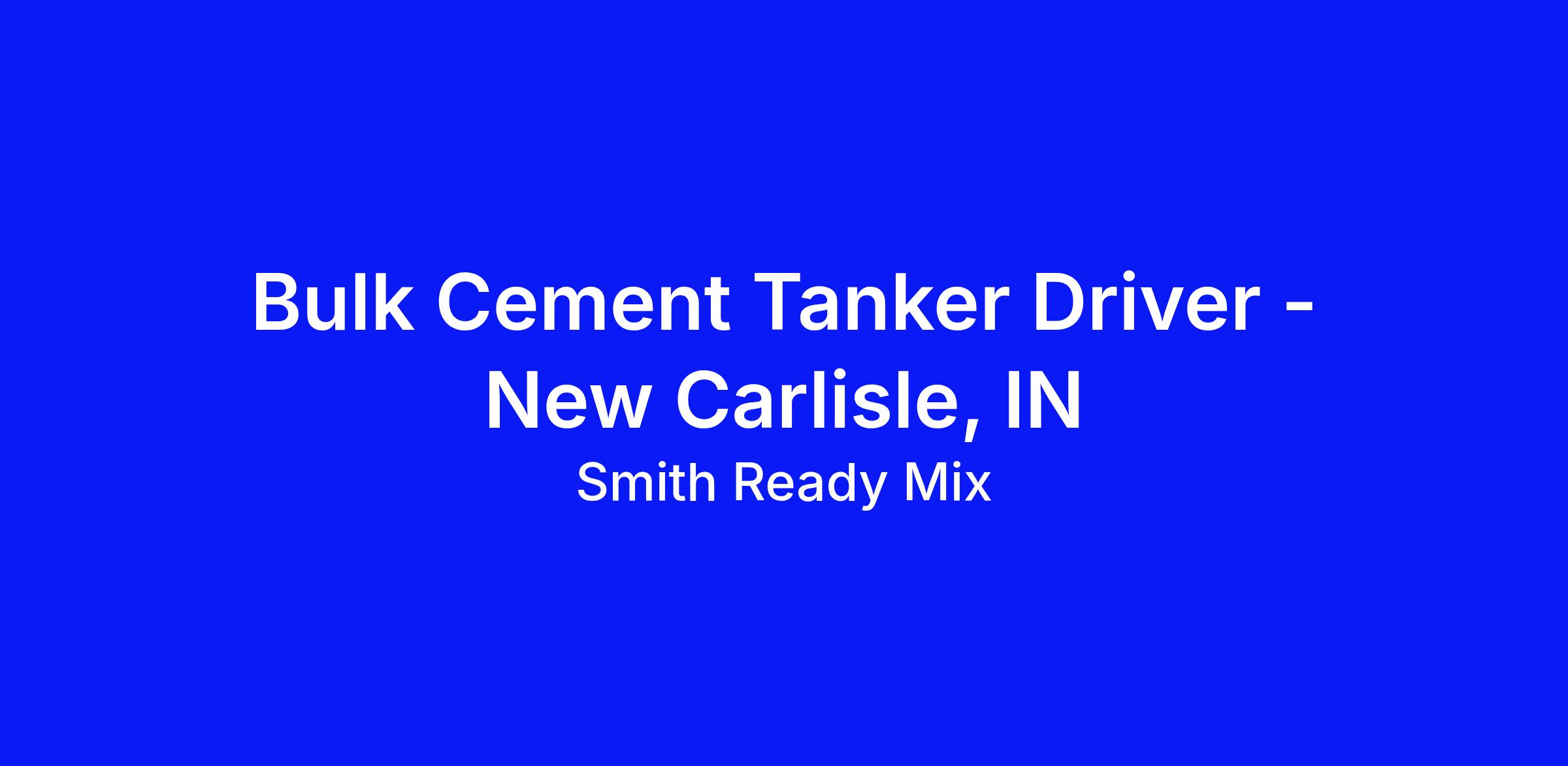 Since 1949, Smith Ready Mix, Inc. has been a leading producer of ready-mix concrete across Northern Indiana. We are committed to delivering the highest standards of quality and service in the industry. We are currently seeking dependable and safety‑focused Class A tanker truck drivers to join our team at our New Carlisle, IN location.