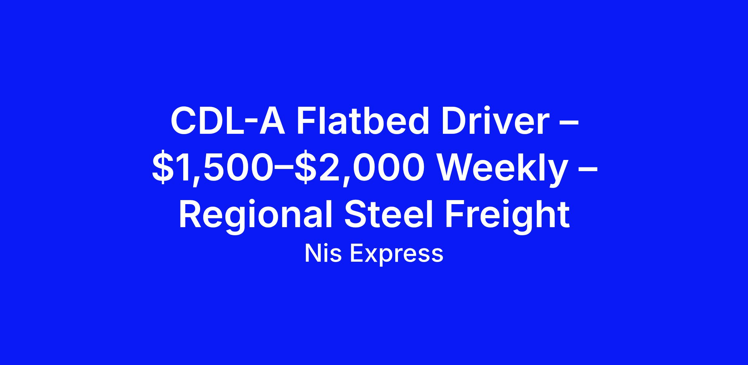 Experienced CDL-A flatbed drivers based near Tupelo, MS run regional freight across five surrounding states (MS, AL, TN, AR, LA) hauling flat steel, pipe, and coil loads. Drivers typically run 2,300–2,800 miles per week, earning $1,500–$2,000 weekly depending on miles and freight volume.