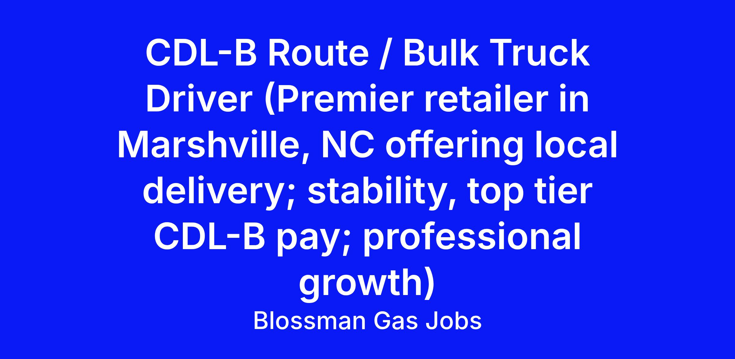 Are you seeking a growing company in which to expand your CDL Route Driver career or learn a sustainable trade while driving locally in the Marshville / Union County, NC area? If so, BLOSSMAN GAS & APPLIANCE, INC, desires qualified applicants seeking professional growth to apply for the position of CDL Route Driver at our growing Marshville area branch location.