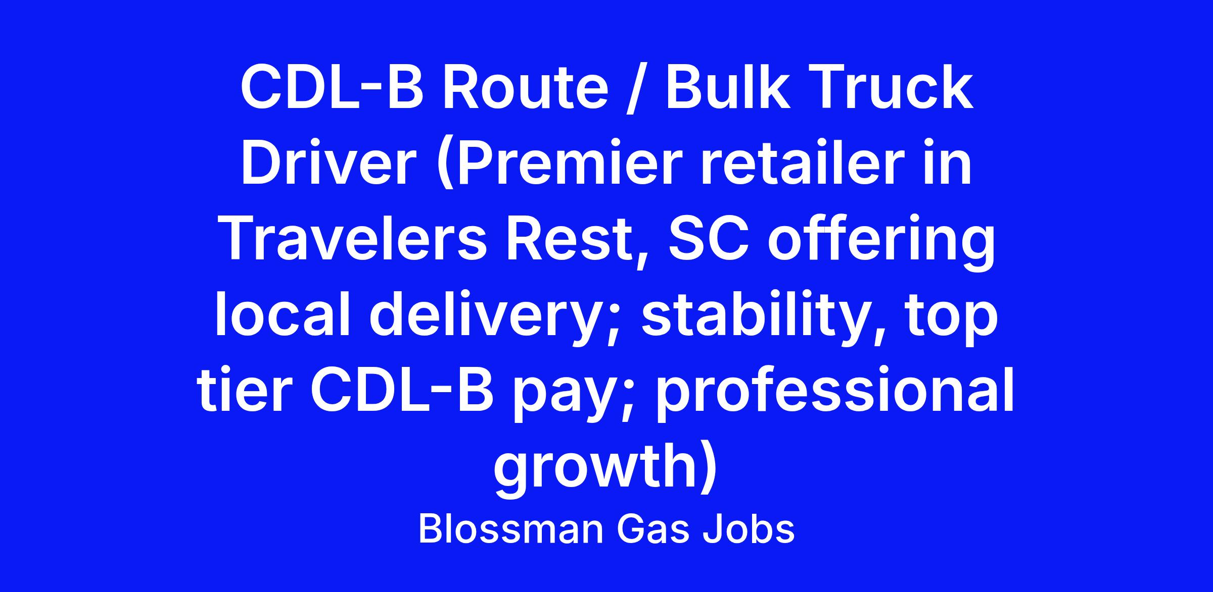 Are you seeking a growing company in which to expand your CDL Route Driver career or learn a sustainable trade while driving locally in the Travelers Rest, SC area? If so, BLOSSMAN GAS & APPLIANCE, INC, desires qualified applicants seeking professional growth to apply for the position of CDL Route Driver at our growing Travelers Rest / North Greenville area branch location.
