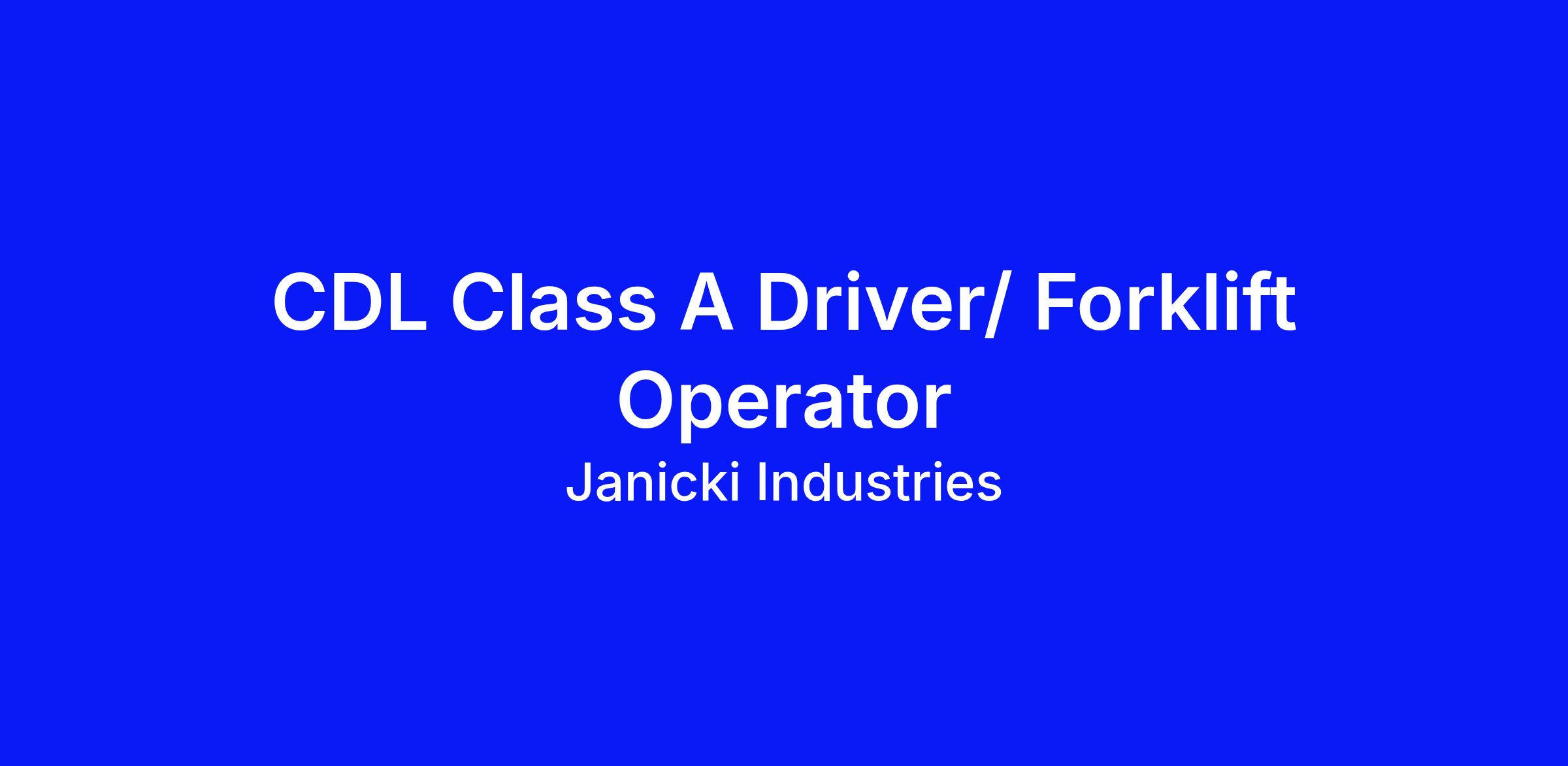 Janicki Industries is an innovative, family-owned aerospace company located at the foot of the Cascades. We focus on engineering and manufacturing complex projects for companies in the aerospace, defense, and space industries. We are looking for a CDL Class A Driver/Forklift Operator to join our growing team.