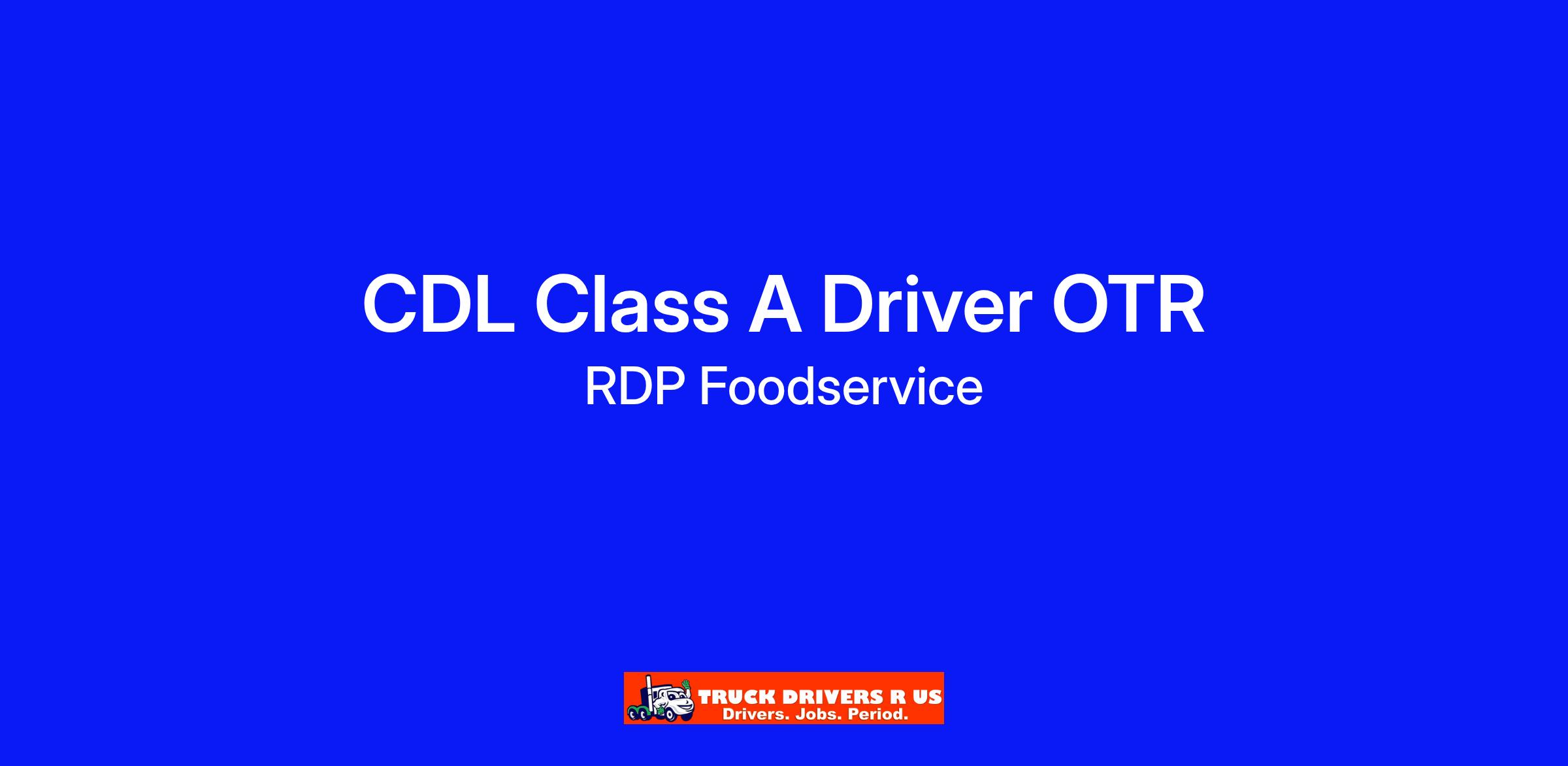 A DAY IN THE LIFE AS An OTR CLASS A CDL DELIVERY DRIVER IN FOODSERVICE As one of our full-time OTR Class A CDL Delivery Drivers, you are a hero that transports our foodservice items in a safe, timely manner into the hands of our grateful customers along your designated route. You also check-in with our clients on their experience with our service and handle all concerns with care. With attention-to-detail, you compare inventory with checklist quantities, accurately complete all tasks, as well as positively represent RDP Foodservice at each stop. You are conscientious about completing pre-trip and post-trip inspections. You keep all necessary paperwork up to date.
