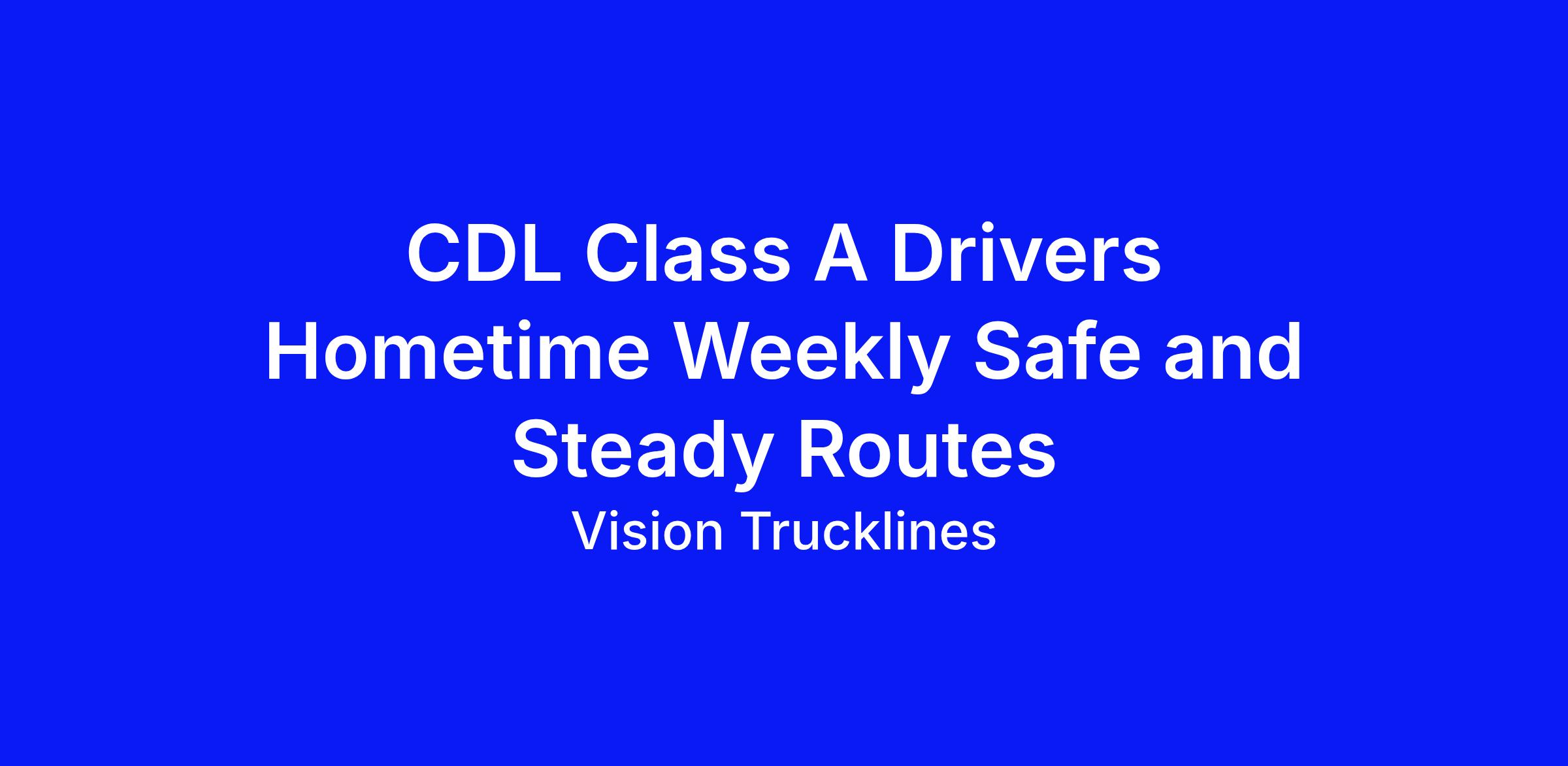 Home Time: 5 days out & 2 days home - Days Off: Tues/Wed or Wed/Thurs.