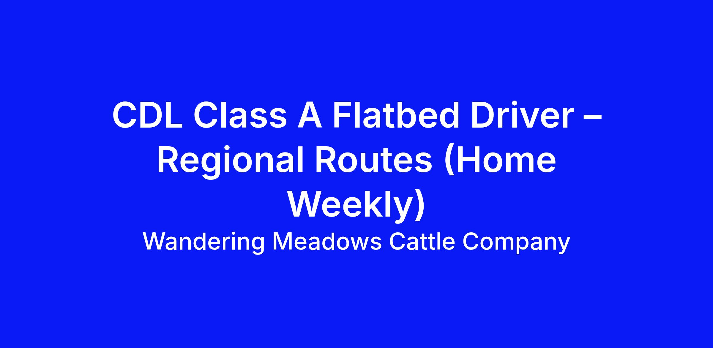 Wandering Meadows Cattle Co. is a growing Midwest-based carrier seeking a dependable CDL Class A driver for regional flatbed routes. This position offers consistent freight, predictable scheduling, and regular home time. Most routes operate within the Midwest and include a mix of short-haul and regional deliveries.