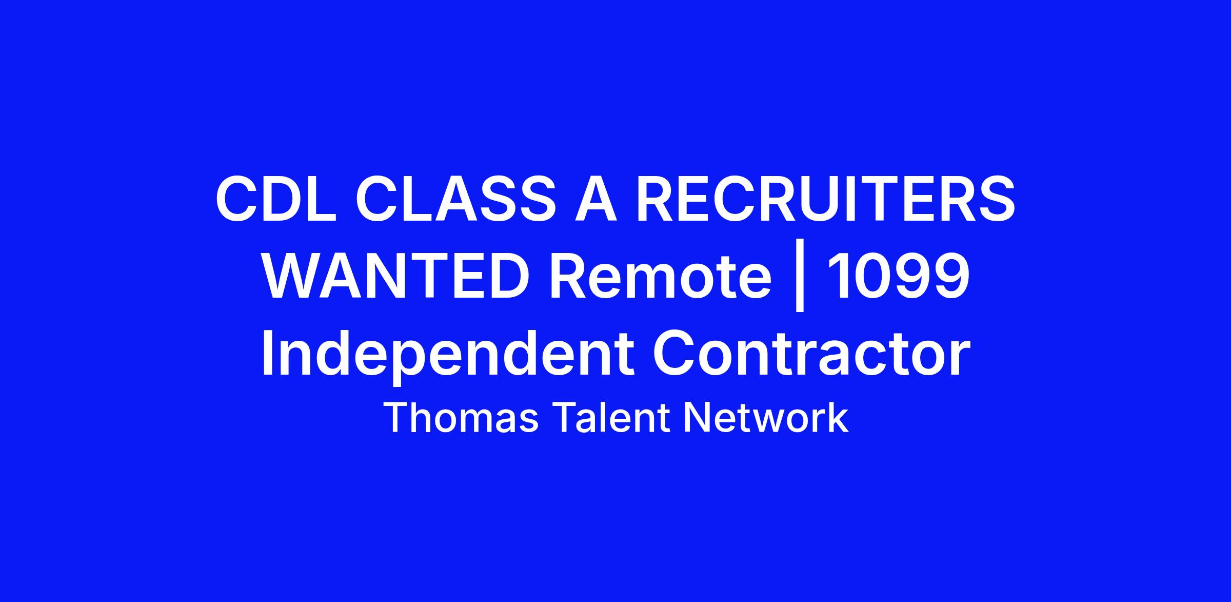 Thomas Talent Network (TTN) is a national staffing and recruiting agency actively placing CDL Class A Drivers with trucking companies across the United States. We are expanding our recruiter network and looking for experienced CDL/transportation recruiters ready to hit the ground running and earn on every placement they make.