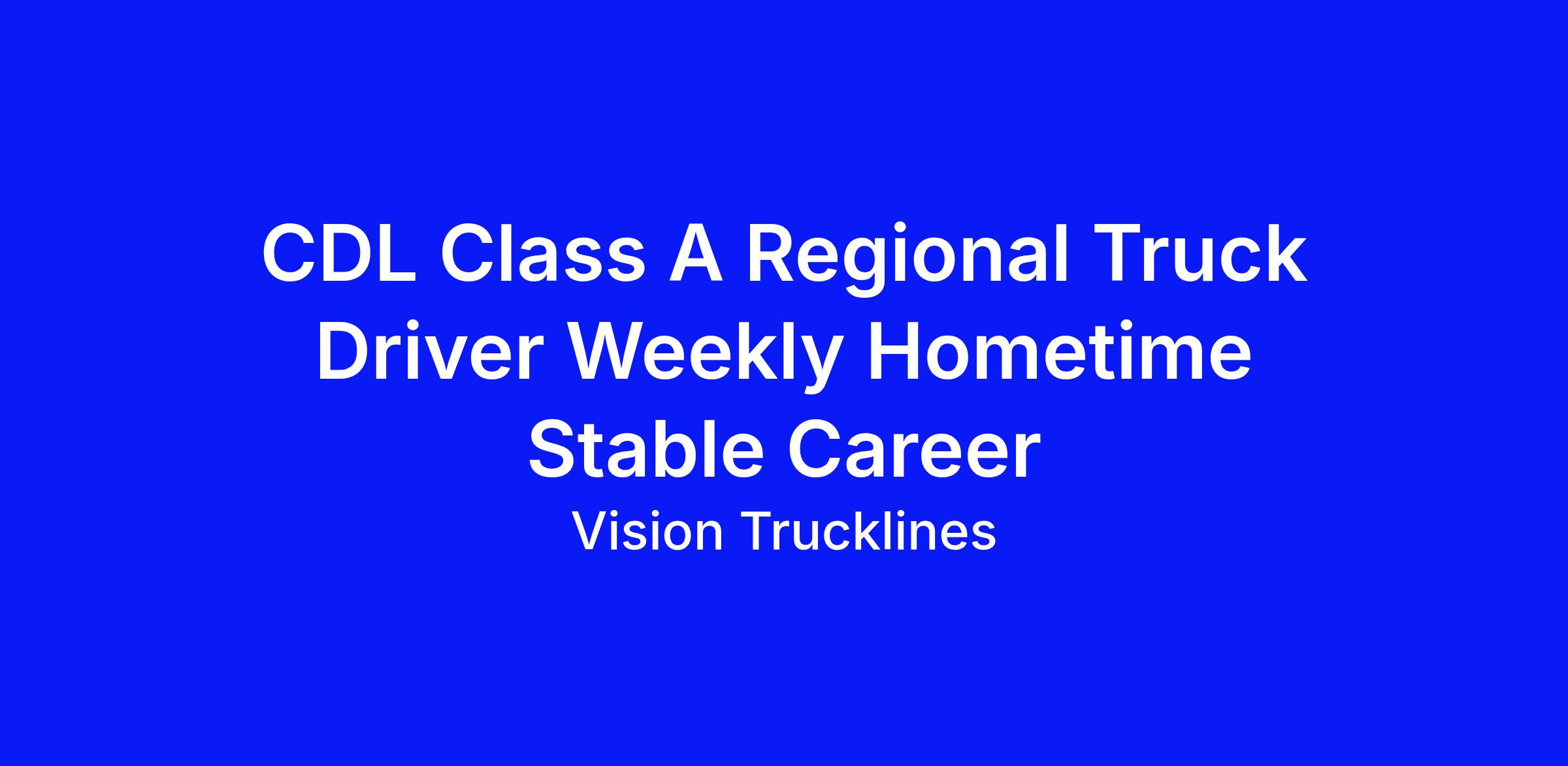 CDL Class A Regional Truck Driver Weekly Hometime Stable Career