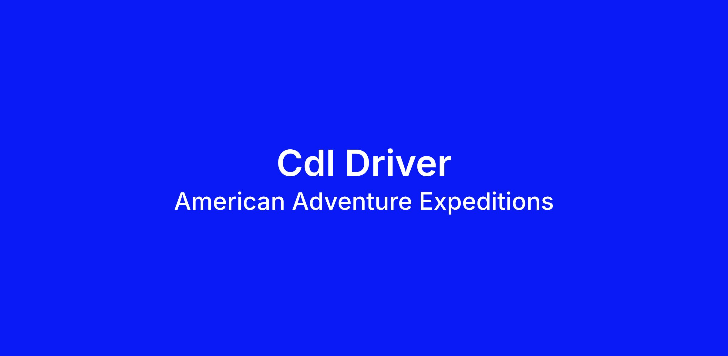Job Purpose: As a professional CDL Driver for American Adventure Expeditions, you will provide safe, clean, and timely transportation for our guests all while adhering to the mission statement of American Adventure Expeditions: To build connection through hospitality focused outdoor adventures!