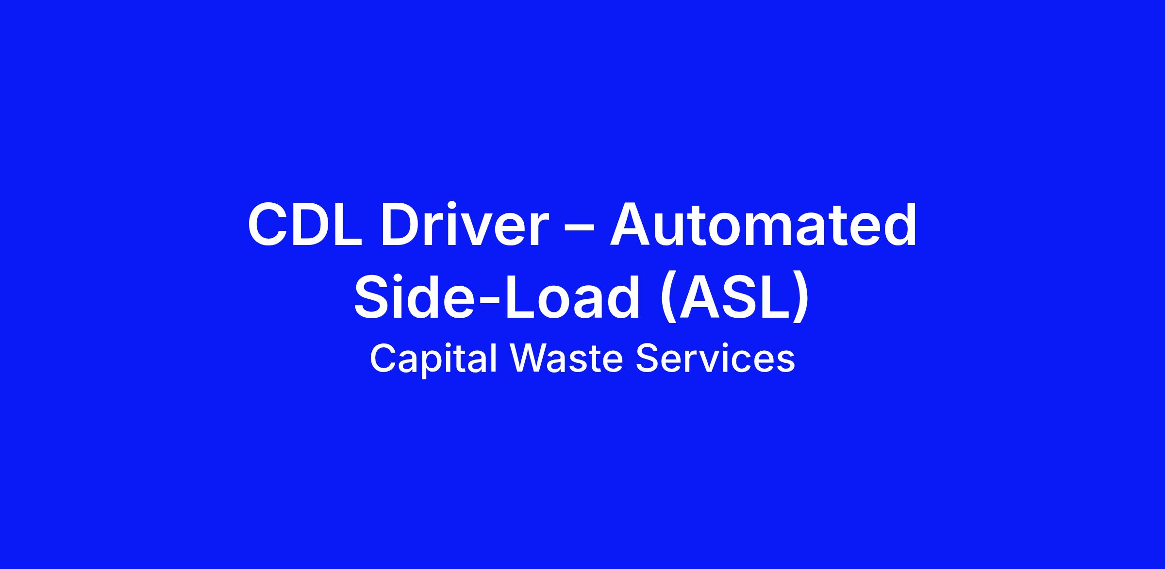 The CDL Driver – Automated Side-Load (ASL) is responsible for operating an automated residential collection vehicle to safely and efficiently service assigned routes. This position focuses on automated side-load equipment and residential service, with an emphasis on safety, route efficiency, customer service, and DOT compliance.