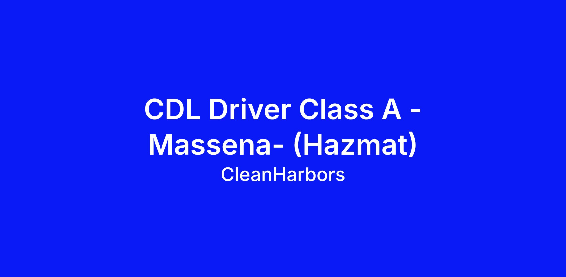 DescriptionClean Harbors in Massena NY is seeking a Class A CDL Driver (HAZMAT) to operate a variety of heavy and light duty trucks/work equipment at our customer sites; some of the vehicles operated include vacuum trucks, Cuscos, guzzlers, and roll offs. This role is responsible for performing driving and non-driving duties on and off customer sites associated with hazardous waste clean-up.