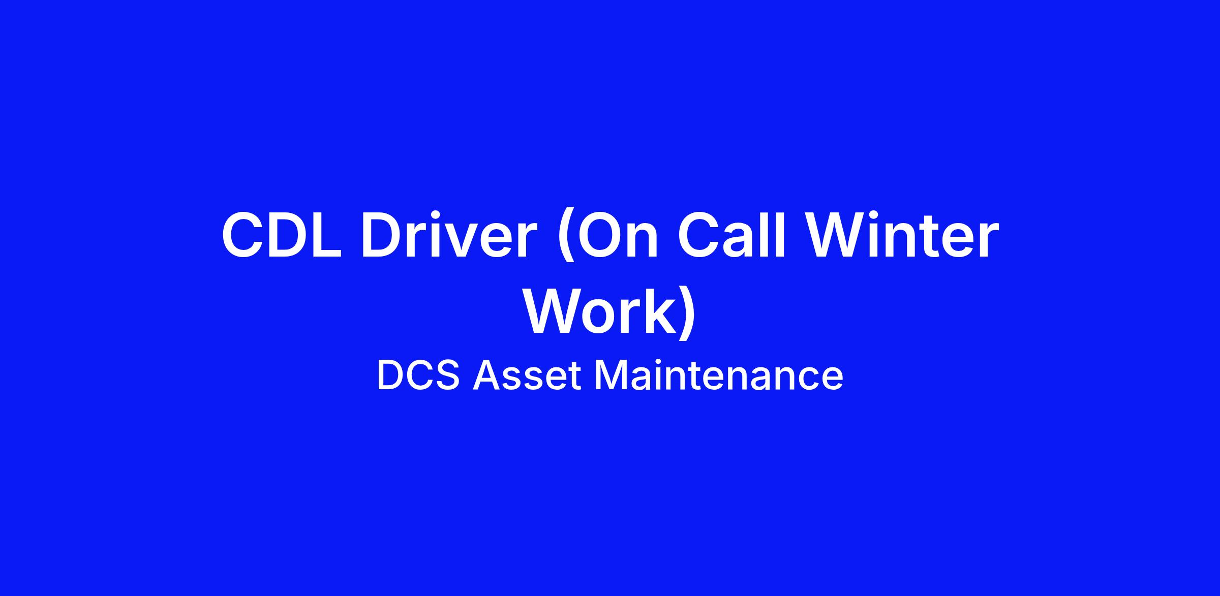 DCS Asset Maintenance (DCSAM) is looking for reliable CDL Drivers to help keep Virginia roads clear and safe during winter weather. This position is on an on-call basis and will only be needed during periods of inclement winter weather.