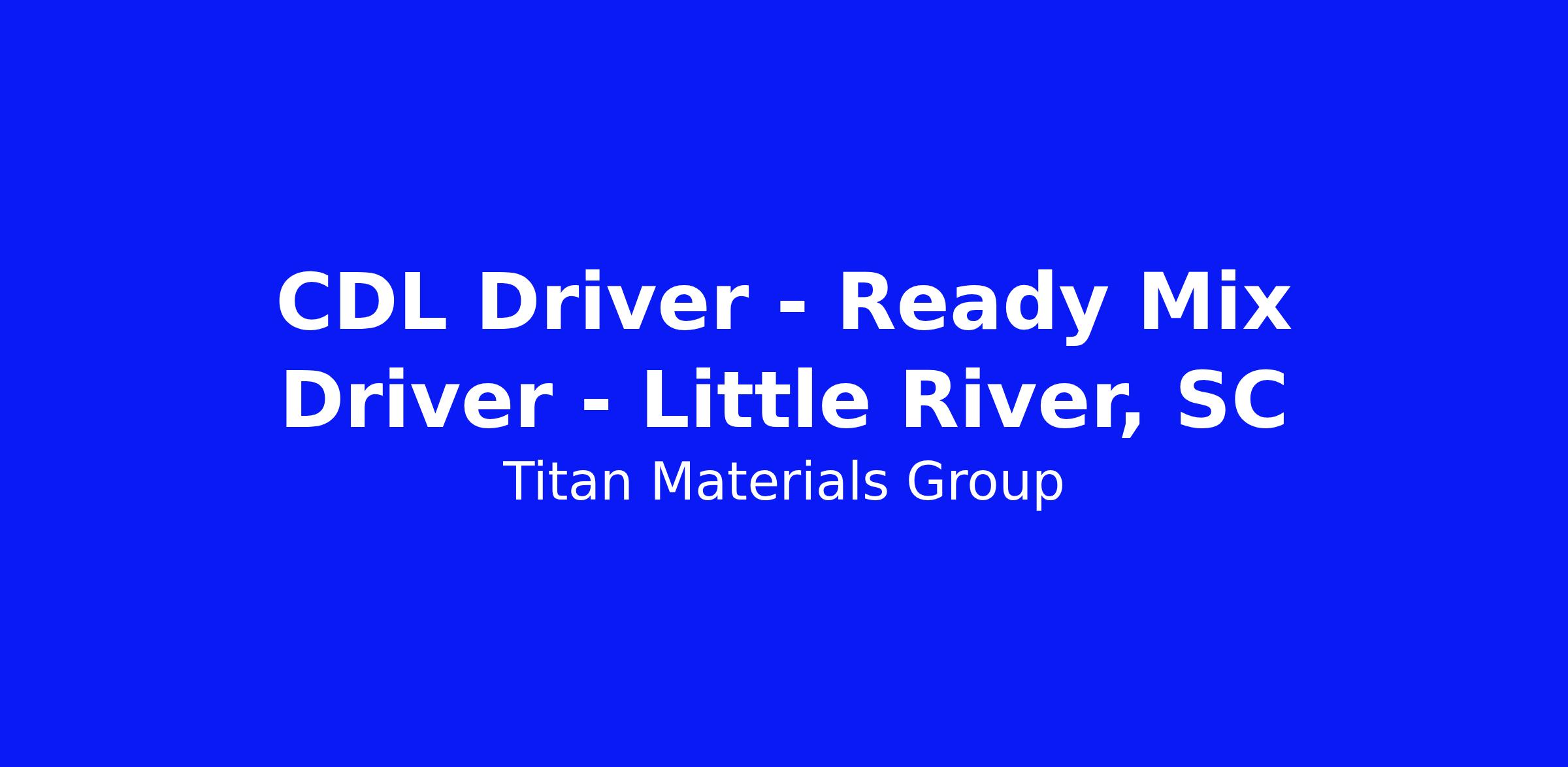 S&W Ready Mix is looking for high energy women and men to fill our openings for CDL Driver - Ready Mix Driver at our Little River plant facility. S&W Ready Mix/Titan America, LLC offers excellent wages and benefits, including health, dental, vision, 401k savings plan, paid vacation, and holidays. Drivers should be flexible, patient, trustworthy, customer service driven, and adaptable to changing environments and schedules.