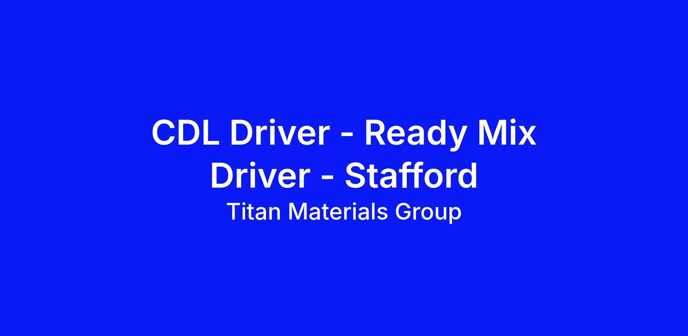 Titan Virginia Ready Mix is looking for high energy women and men to fill our openings for Ready Mix Drivers at our facilities in Stafford, Virginia. Titan Virginia Ready Mix offers excellent wages and benefits, including health, dental, vision, 401k savings plan, paid vacation, and holidays. Drivers should be flexible, patient, trustworthy, customer service driven, and adaptable to changing environments and schedules.