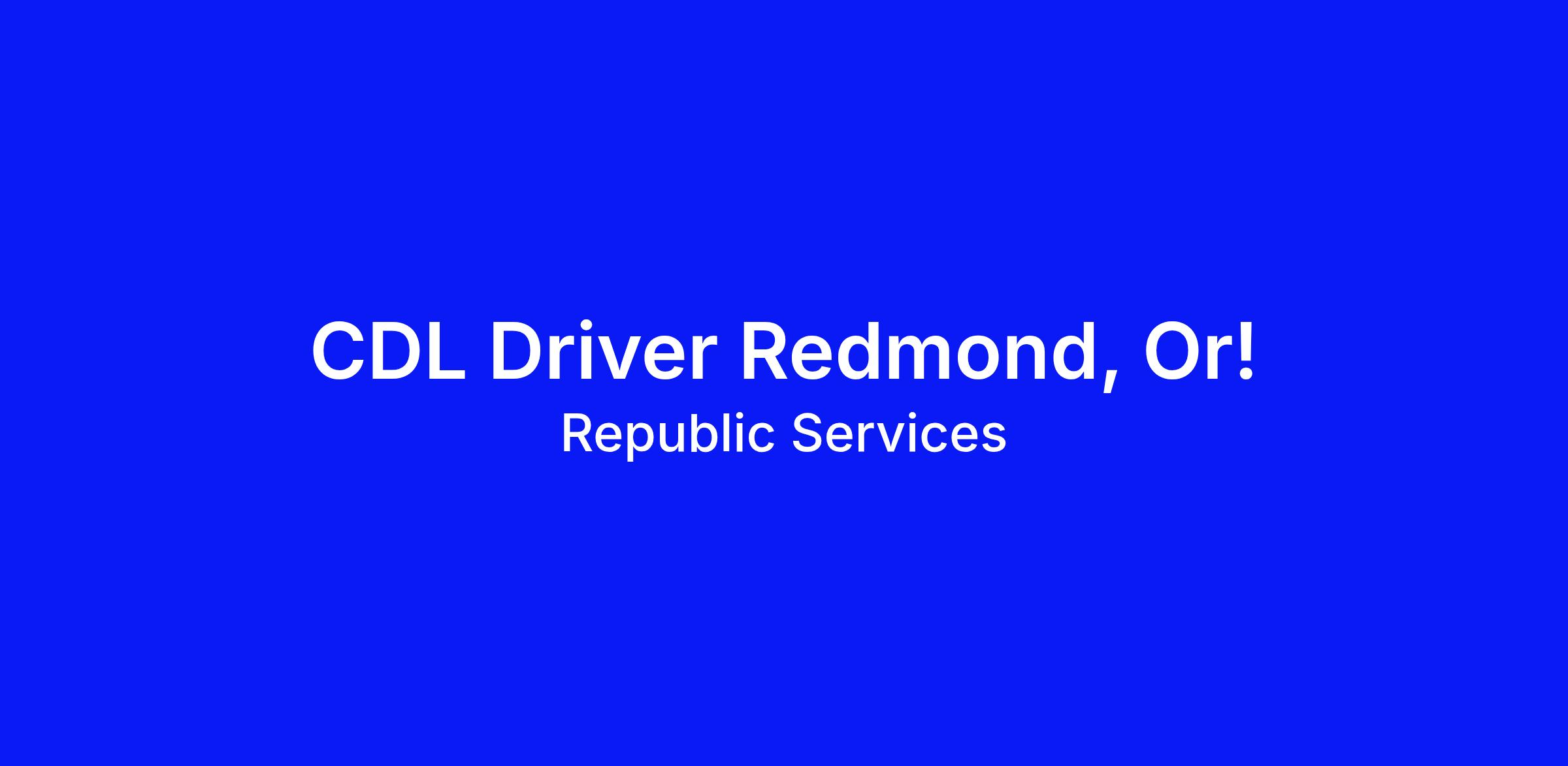 CDL Driver Redmond, Or!