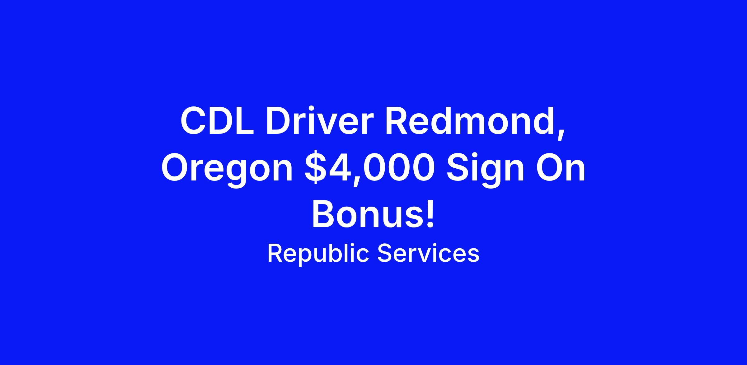 CDL Driver Redmond, Oregon $4,000 Sign On Bonus!
