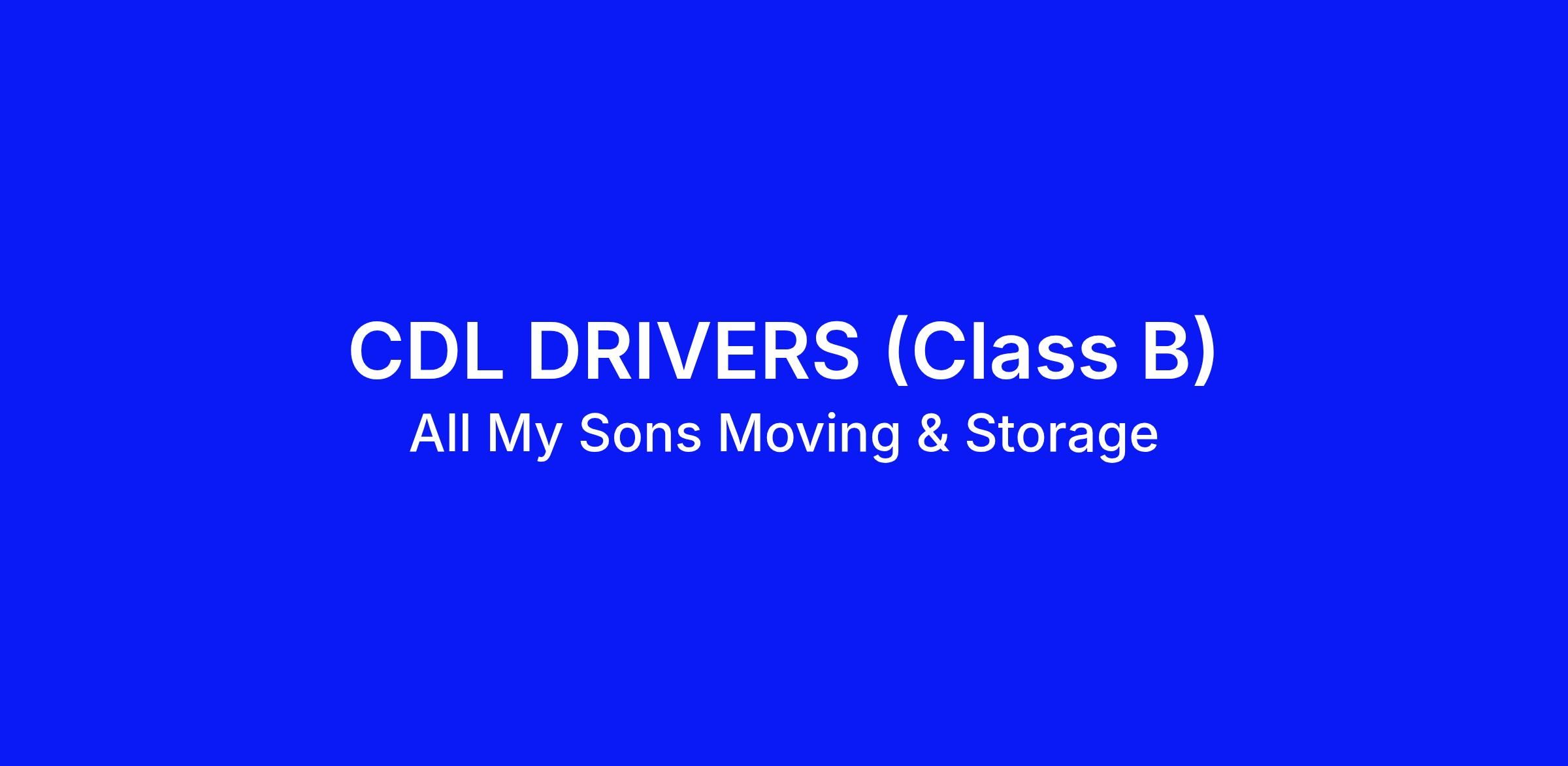 Come join the All My Sons Moving Family. Start your career as an All My Sons Driver / Crew leader. We have had over 50 + drivers promote to management positions within the company and are always looking to grow from within. Your future starts here.