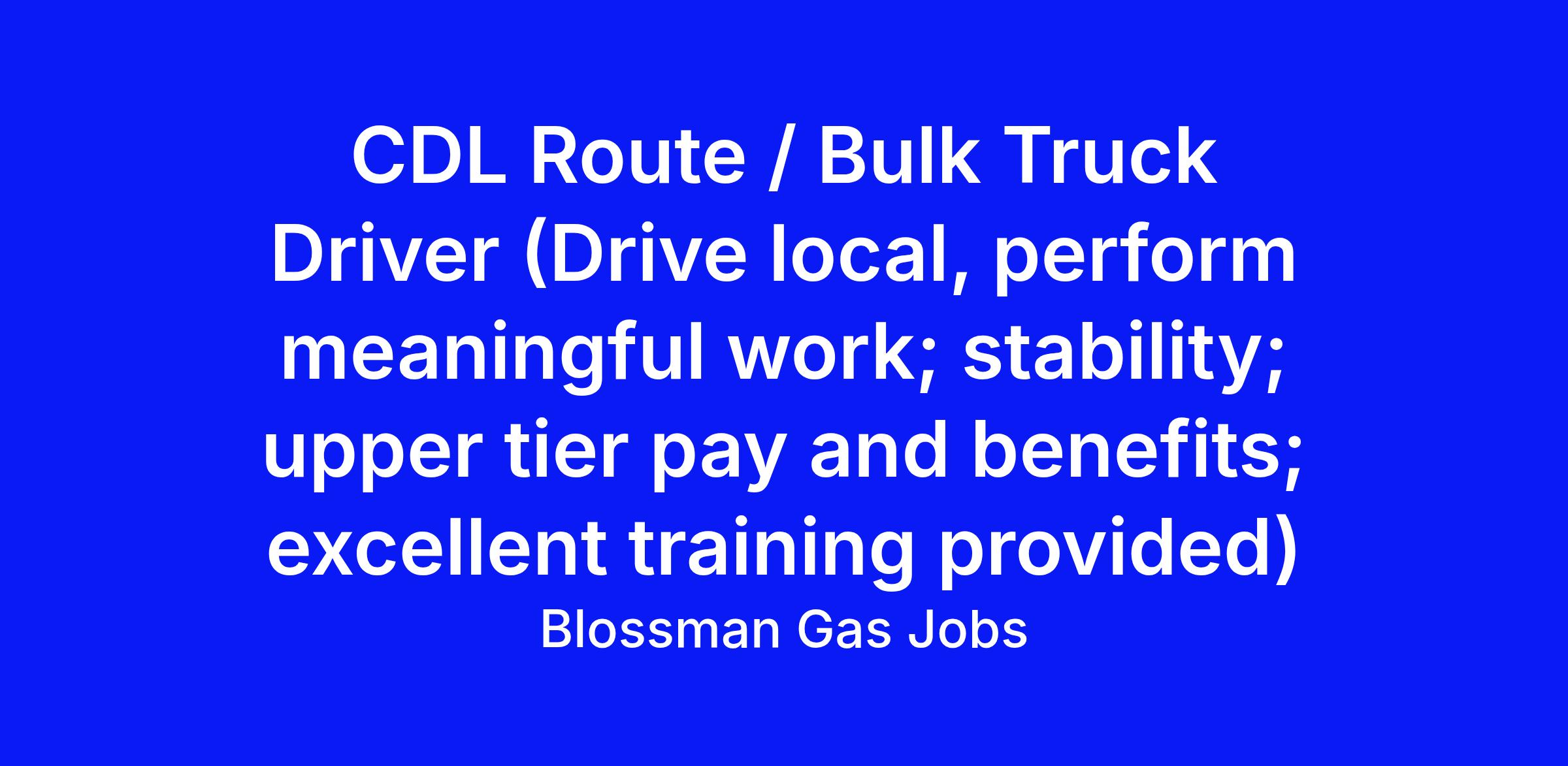 The position requires customer service skills, occasional on-call duty, and being a contributing member of team work environment while championing Blossman's core line of products and services. Driving and delivering in all-weather conditions is routine. A strong commitment to safety, consistent with company policy, is a must. Regular bending, lifting and pulling are associated with this job. This position will require a valid CDL with hazmat and tanker endorsements within 90 days of hire so a clean driving record is needed. (We can help you with this process with some commitment on your part to stay with the company as a driver for 2 years.)