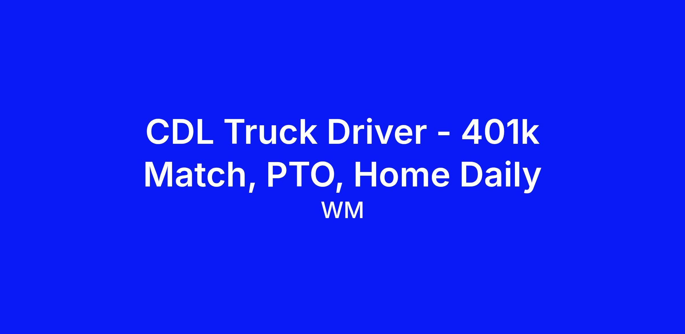 CDL Truck Driver - 401k Match, PTO, Home Daily