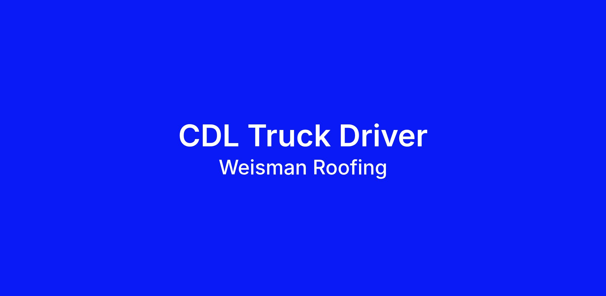 As a CDL Truck Driver for Weisman Roofing, your daily responsibilities will include: