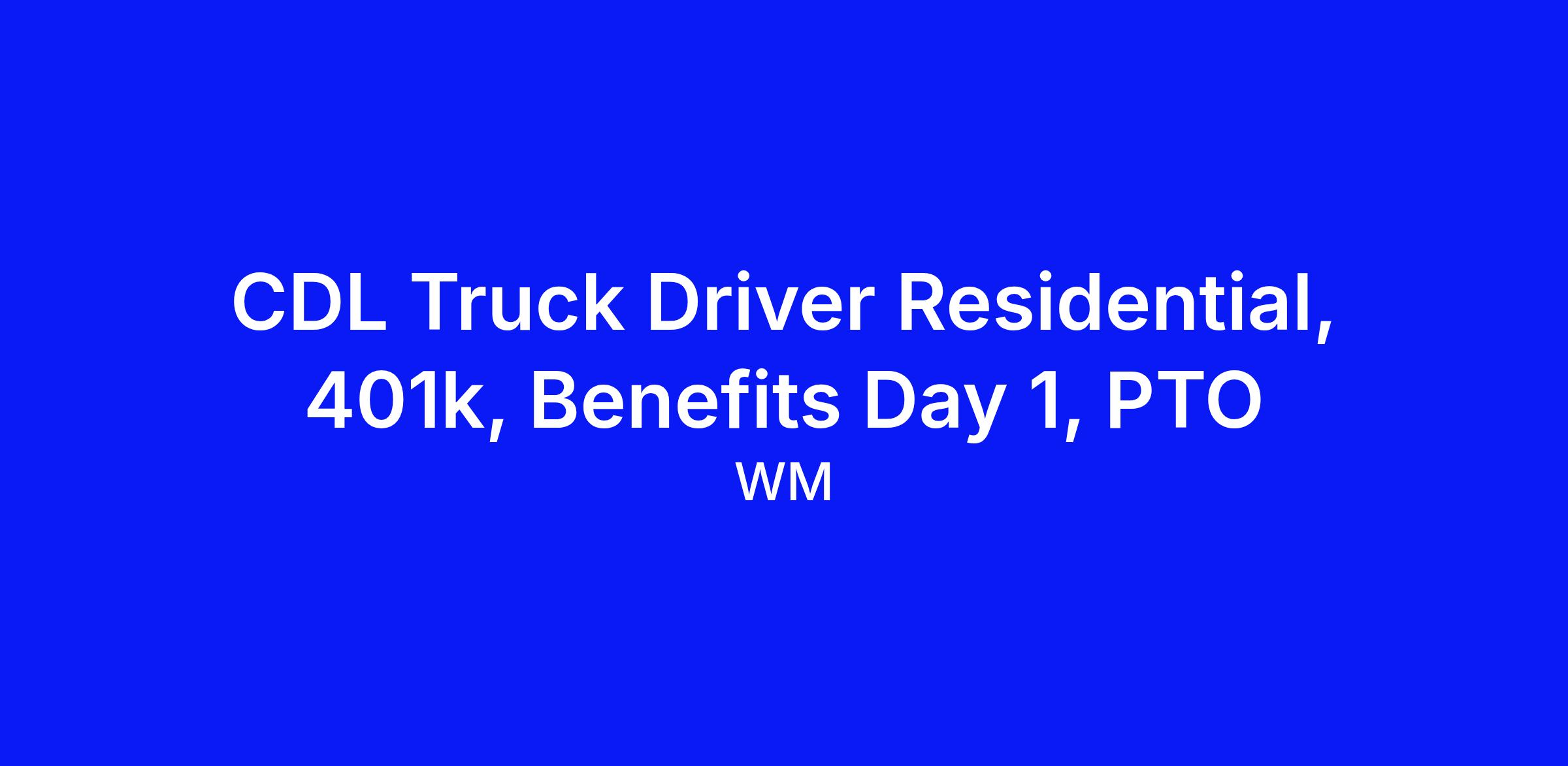 At WM, each eligible employee receives a competitive total compensation package including Medical, Dental, Vision, Life Insurance and Short Term Disability. As well as a Stock Purchase Plan, Company match on 401K, and more! Our employees also receive Paid Vacation, Holidays, and Personal Days. Please note that benefits may vary by site.