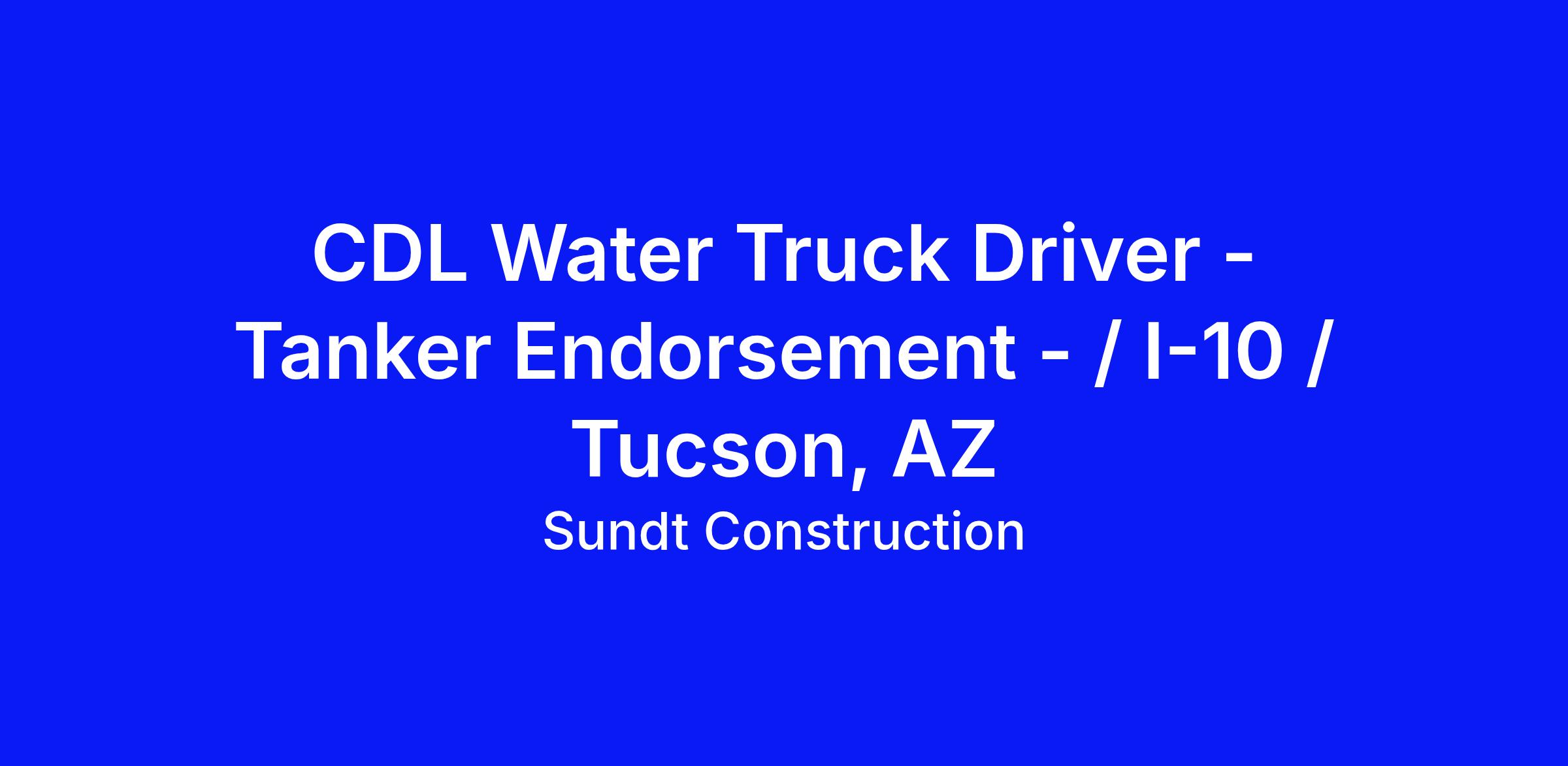 Sundt is seeking CDL Water Truck drivers for our project in Tucson, AZ. The position offers a pay rate of $26-28 per hour, with an additional cash fringe. The position is available for at least three years. Working 40+ hours per week, you'll enjoy a stable work schedule. You must pass a pre-employment CDL drug test, and maintain a current Medical Card.