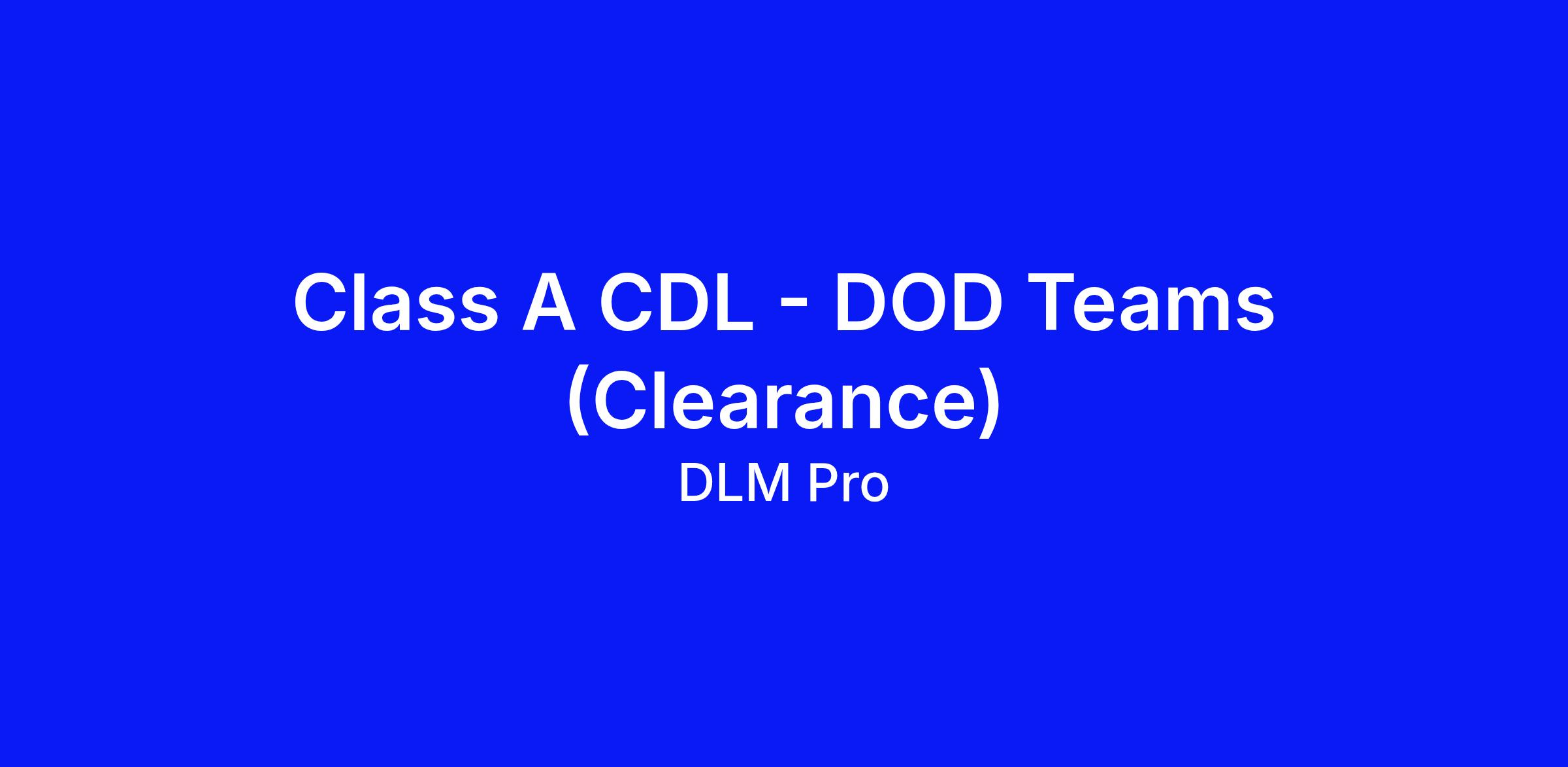 Job Title: Class A CDL Team Drivers - DOD Clearance Needed
