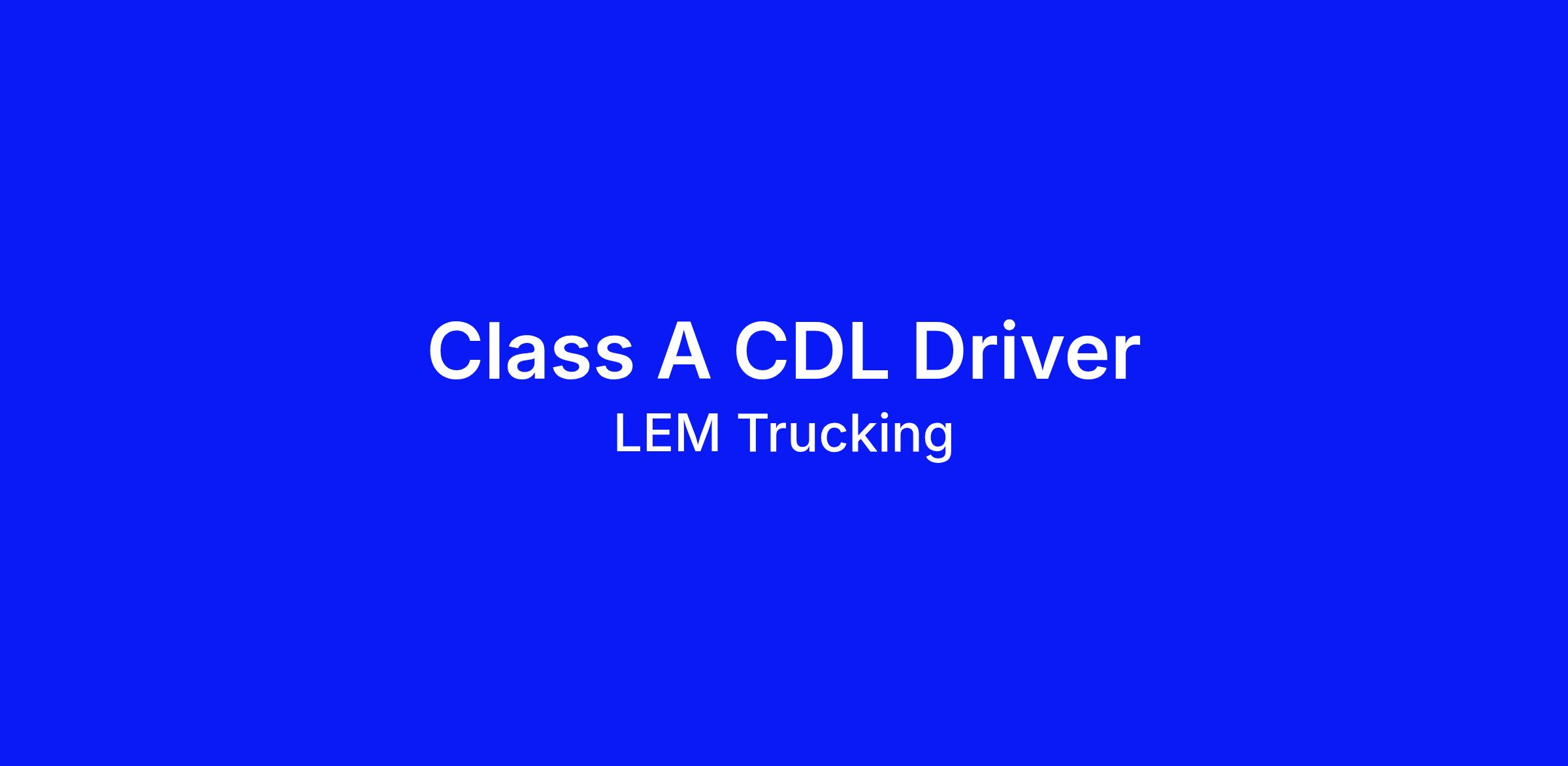 LEM Trucking is an equal opportunity employer. All qualified applicants will receive consideration for employment without regard to race, color, religion, sex, national origin, age, disability, or veteran status.