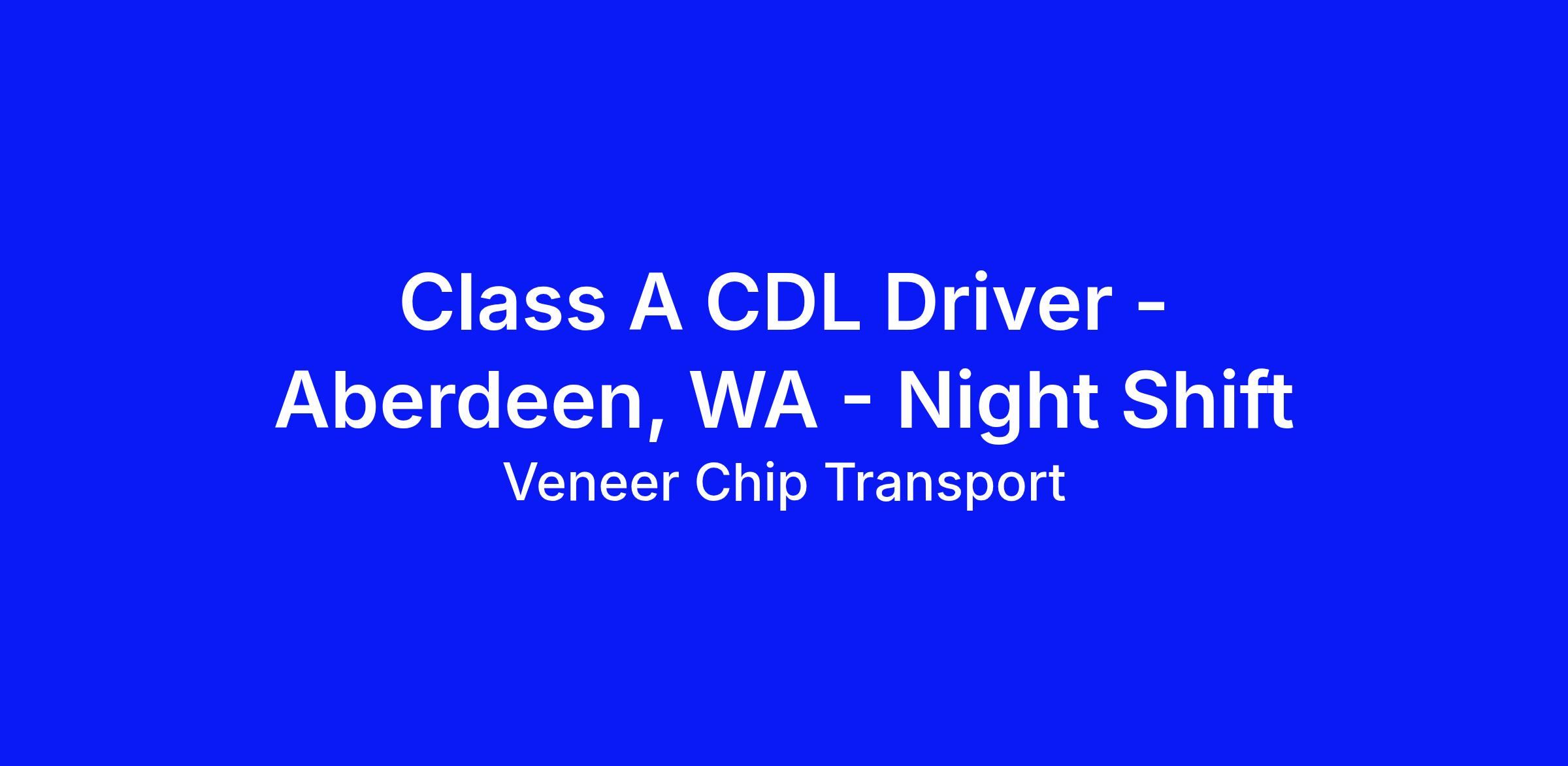 VCT is currently looking for safe and reliable Class A CDL truck drivers for our night shift in the Aberdeen area. This team member is responsible for hauling wood residuals from various mills to various destinations.
