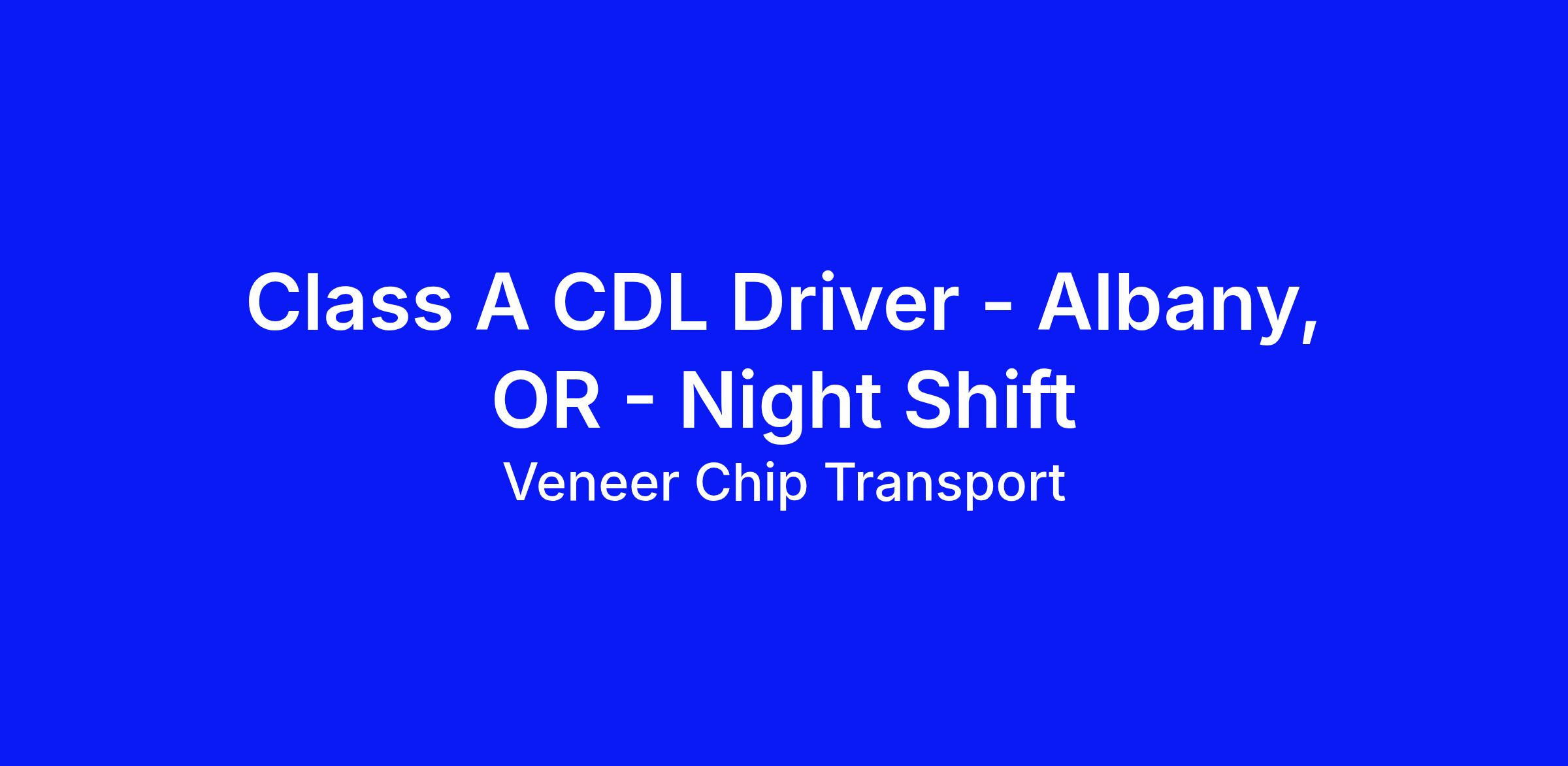 VCT is currently looking for safe and reliable Class A CDL truck drivers for our night shift in the Albany area. This team member is responsible for hauling wood residuals from various mills to various destinations.