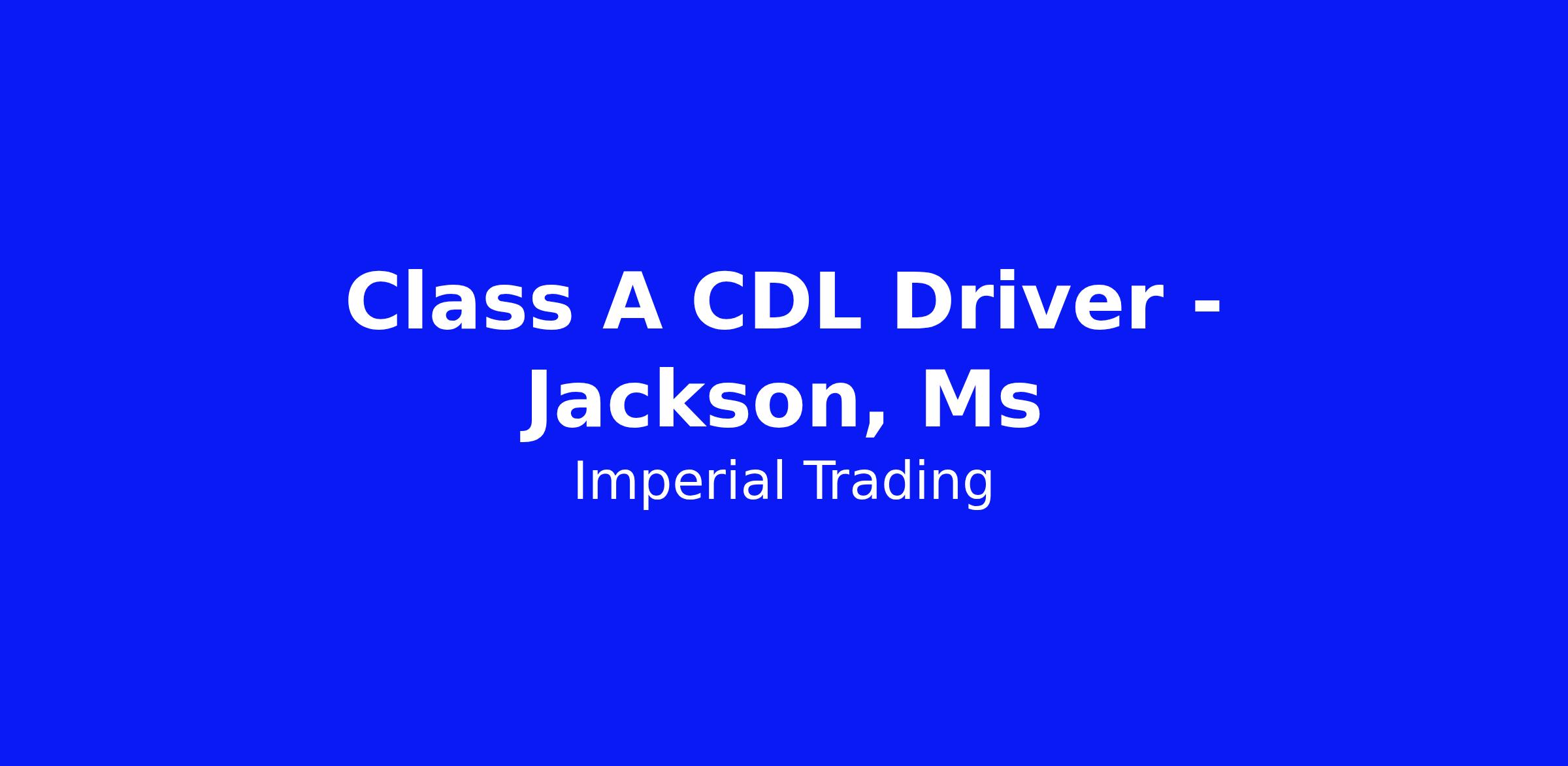 SUMMARY: Imperial Trading Co., LLC is looking for highly motivated and skilled CDL Class A Route Drivers to join our Team working from a new location in Jackson, MS! We are proud that our Company has been in business for more than 100 years and continues expand as one of the nation's largest food distributors.