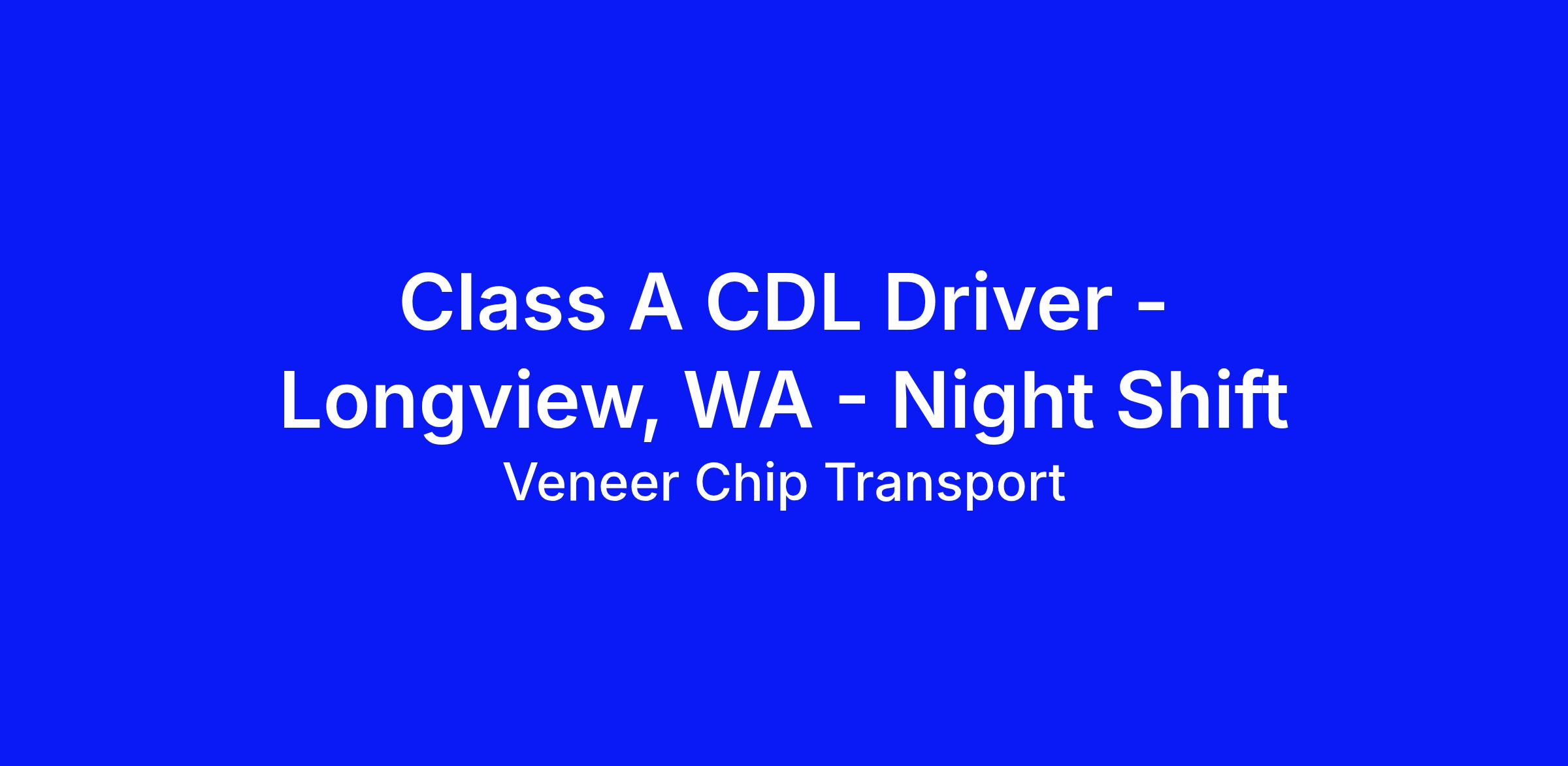 VCT is currently looking for safe and reliable Class A CDL truck drivers for our night shift in the Longview area. This team member is responsible for hauling wood residuals from various mills to various destinations.
