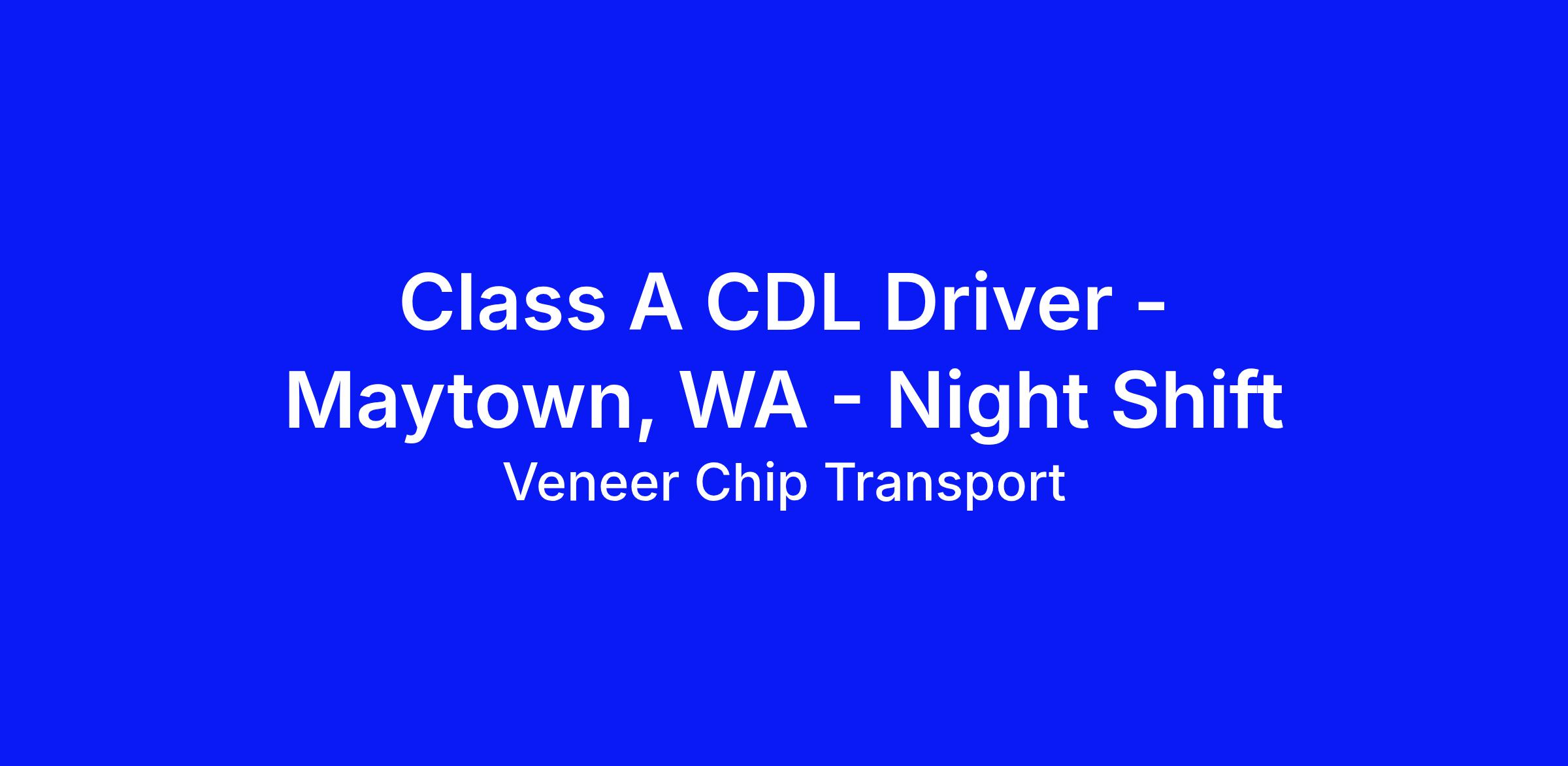VCT is currently looking for safe and reliable Class A CDL truck drivers for our night shift in the Maytown/Olympia/Centralia area. This team member is responsible for hauling wood residuals from various mills to various destinations.