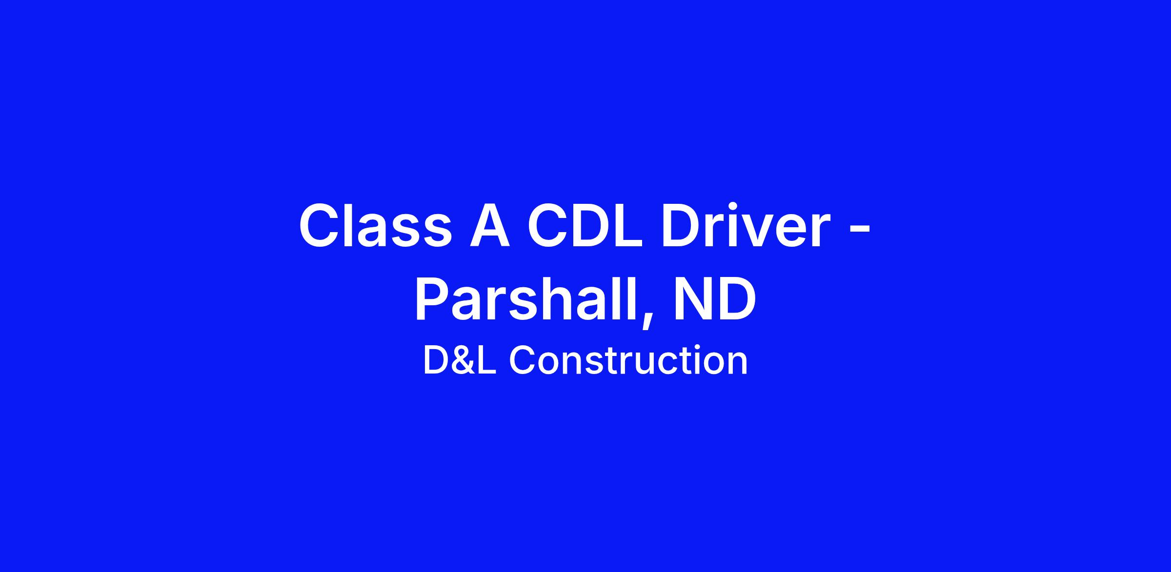 D&L Construction Inc. located near Parshall, ND is looking for experienced Class A CDL truck drivers to join our crew. We are looking to hire immediately, and pay is based on experience.