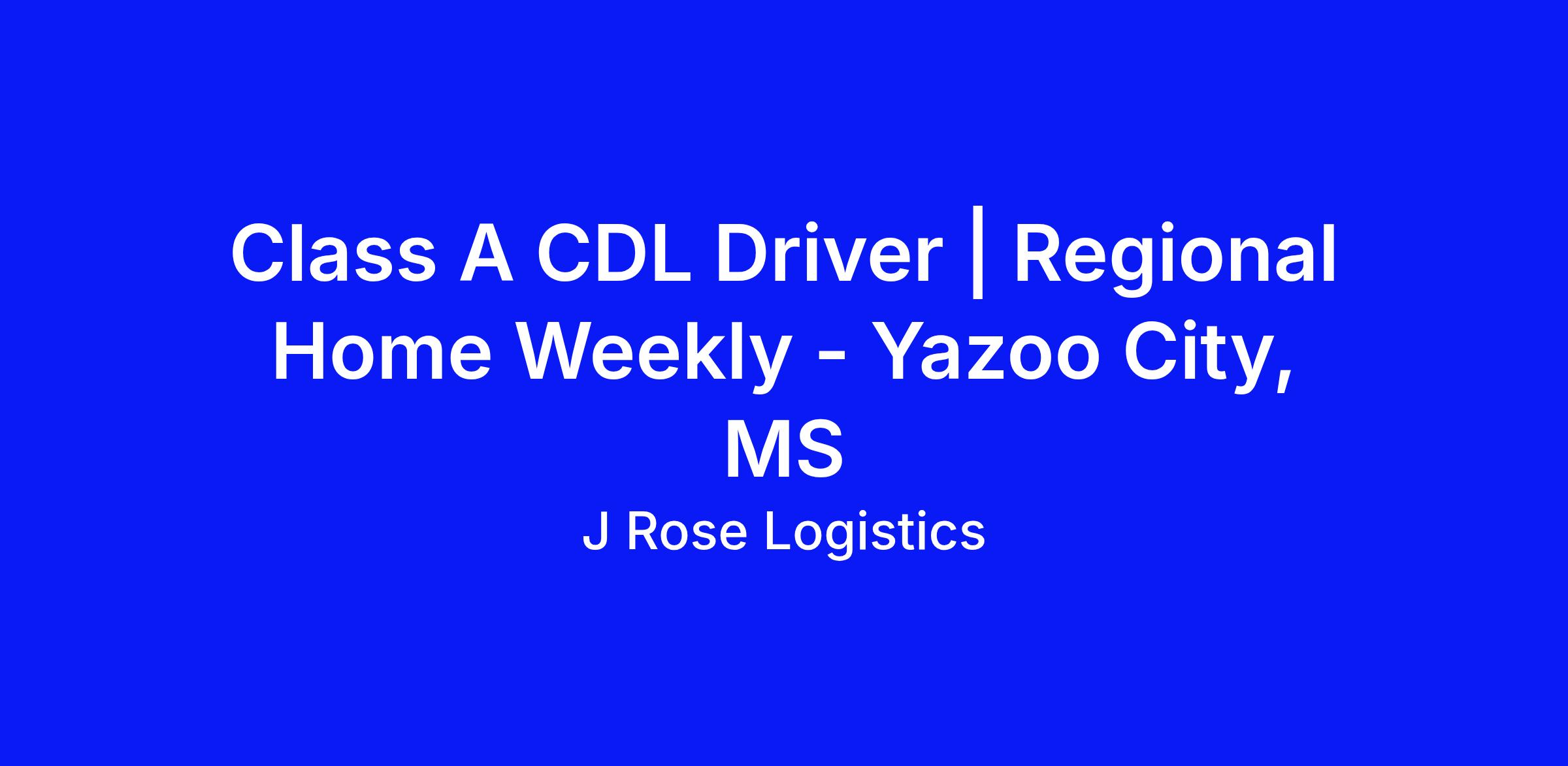 Class A CDL Driver | Regional Home Weekly - Yazoo City, MS