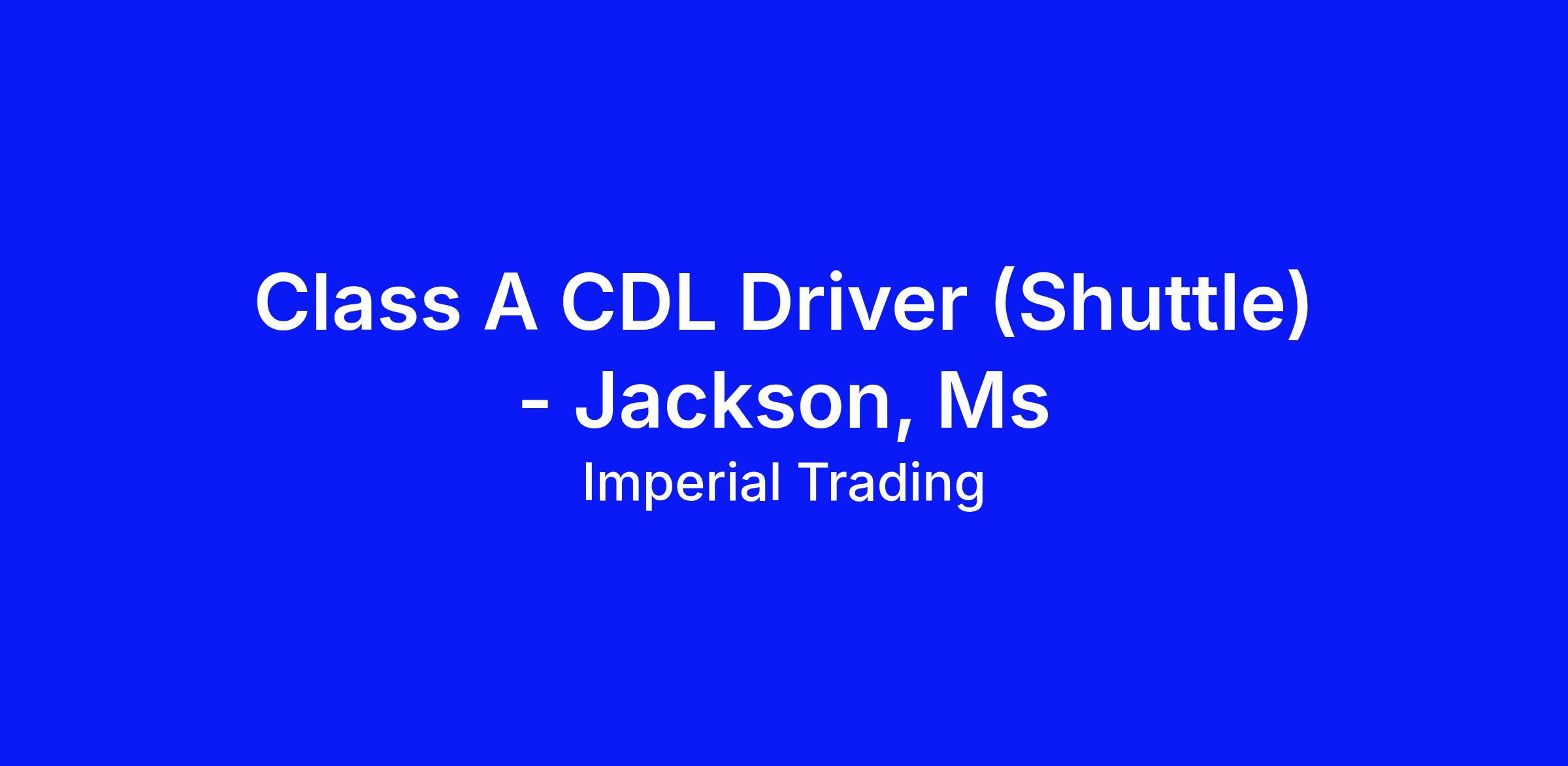 Imperial Trading Co., LLC is looking for highly motivated and skilled CDL Class A Route Drivers to join our team working in Jackson, MS! Delivery drivers will be delivering to convenience stores locally and in nearby states. This is not an over the road driver position. We are proud that our Company has been in business for more than 100 years and continues expand as one of the nation's largest food distributors.