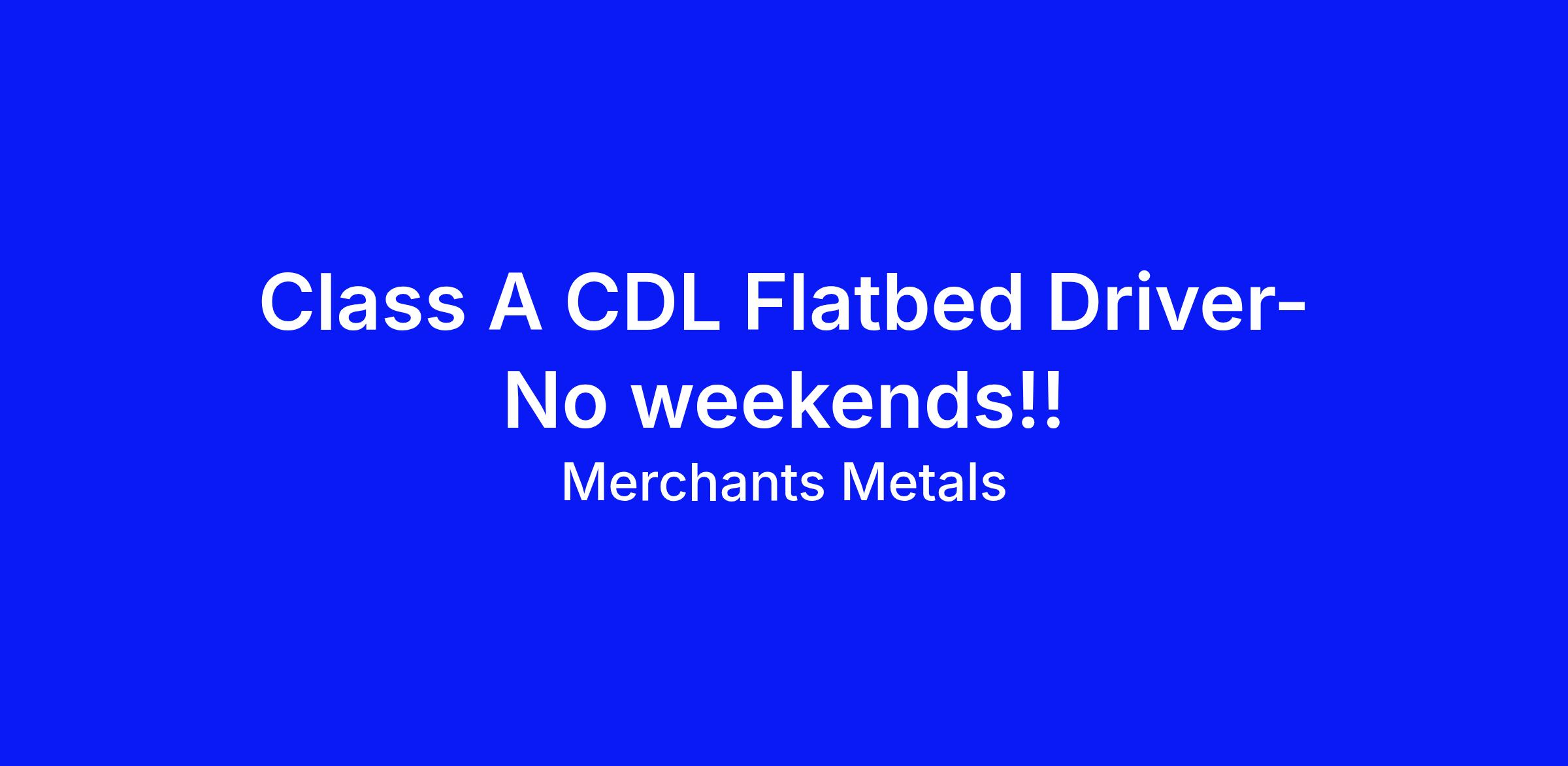 Merchants Metals is searching for a dedicated Class A CDL Driver.