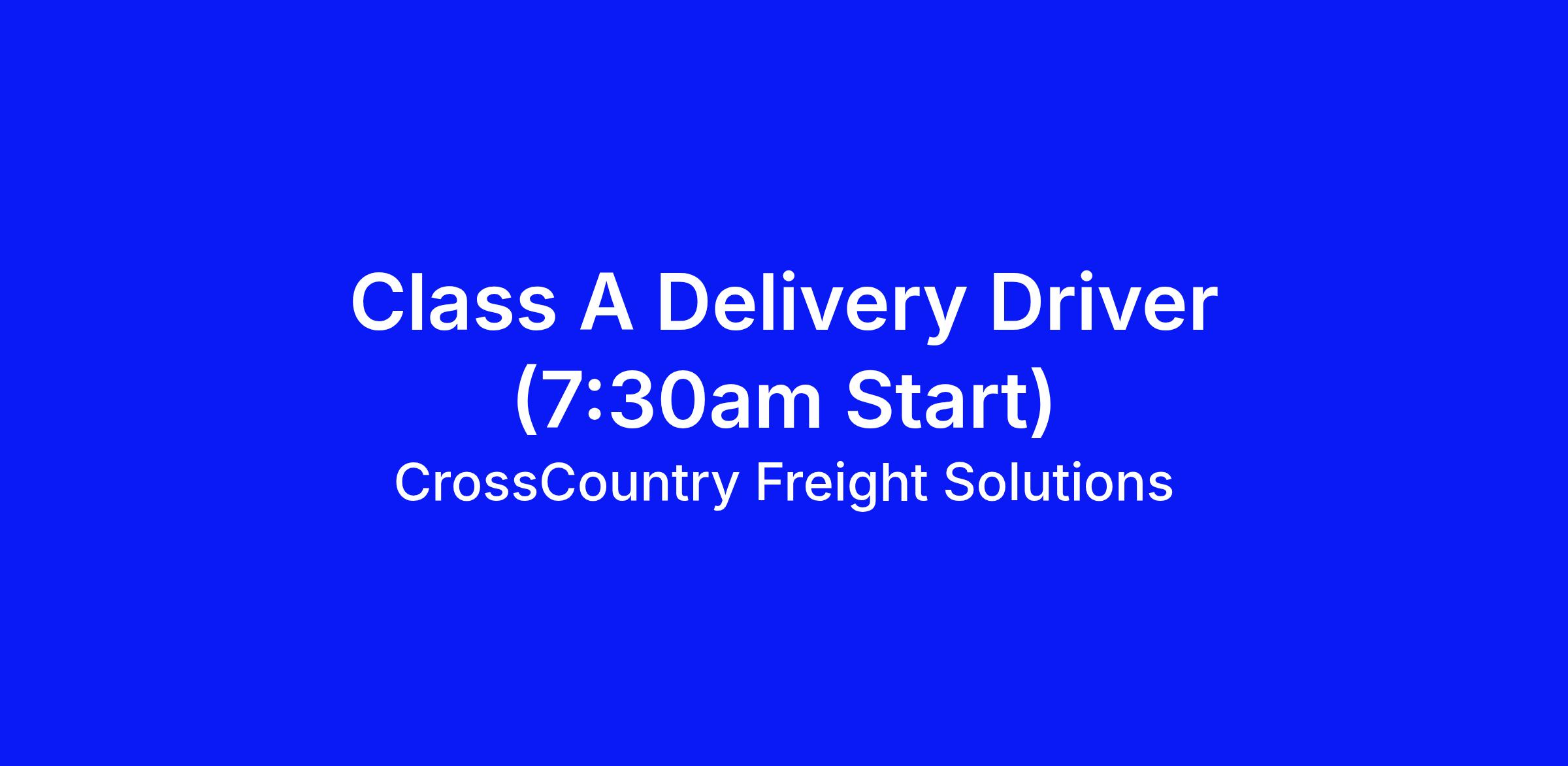 CrossCountry Freight Solutions is in search of Class A drivers with a passion for customer service and a safety-first mindset to join our dynamic team. The CDL A position is a Route Delivery Driver position in which you will operate a Company motor vehicle to transfer freight safely and efficiently to and from specified locations by a specified time. This position unloads, sorts, palletizes, and reloads a wide variety of freight, manually or with the aid of a mechanical device. Completes all paperwork required by government regulations and Company procedures/policies.?