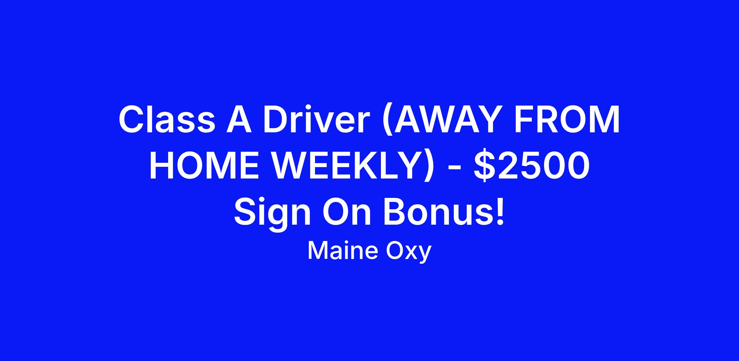 Maine Oxy is looking to fill a Class A Driver with a Hazmat Endorsement position based in Carrboro, NC.