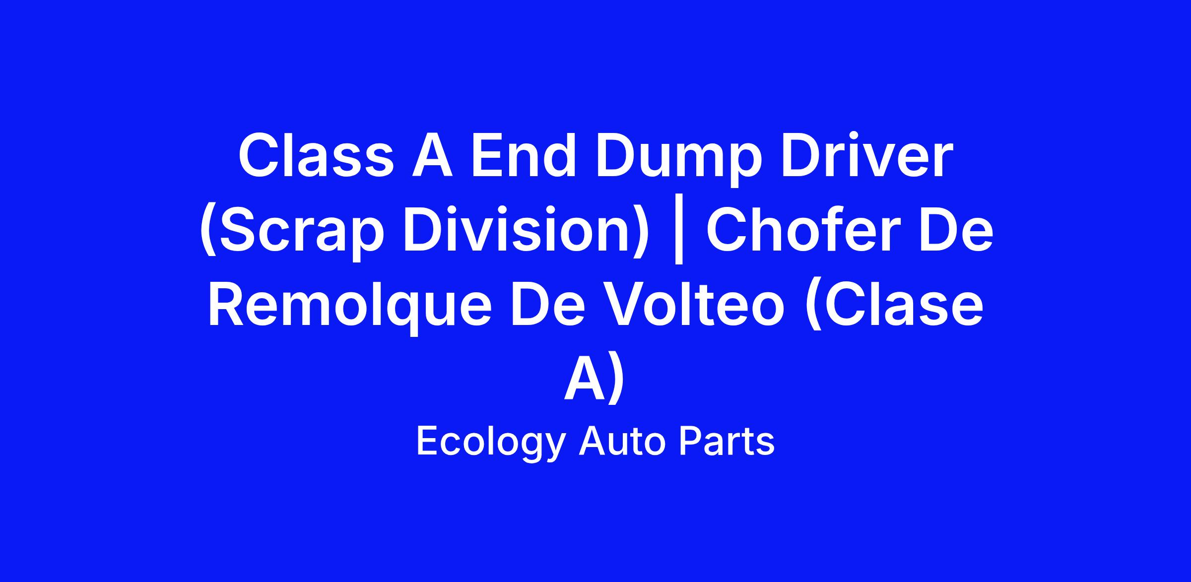 Class A End Dump Driver (Scrap Division) | Chofer De Remolque De Volteo (Clase A)