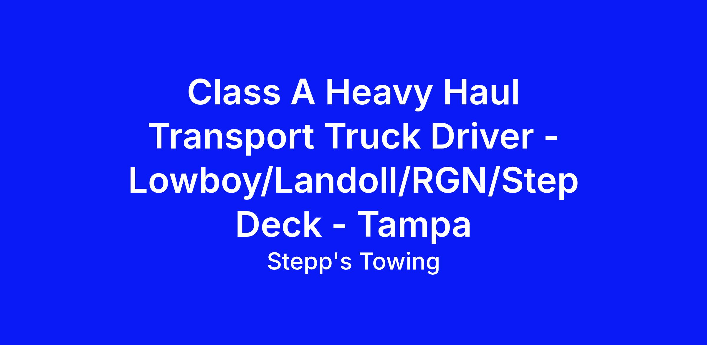 Class A Heavy Haul Transport Truck Driver - Lowboy/Landoll/RGN/Step Deck - Tampa