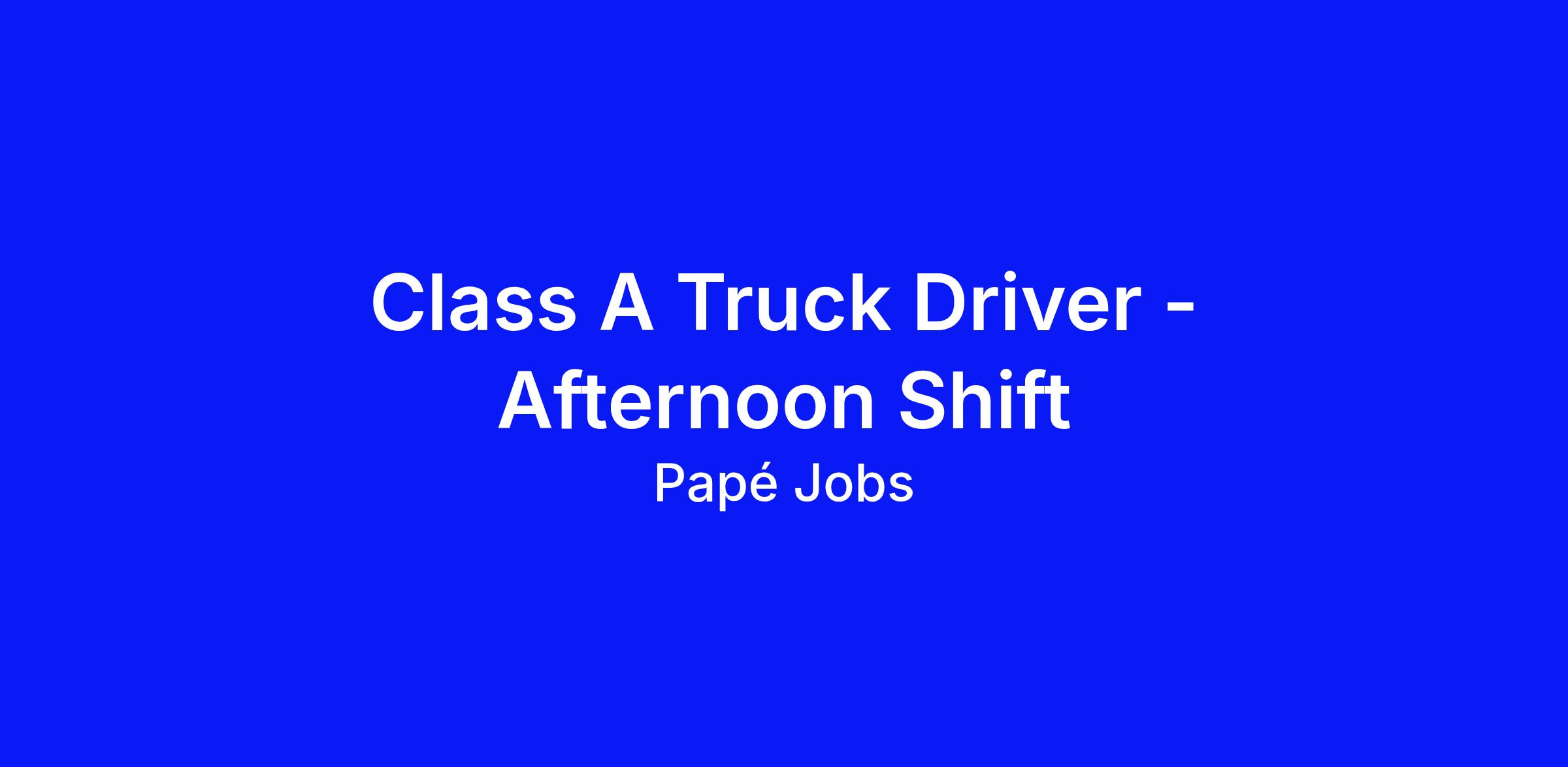 CLASS A TRUCK DRIVER – AFTERNOON SHIFT:
