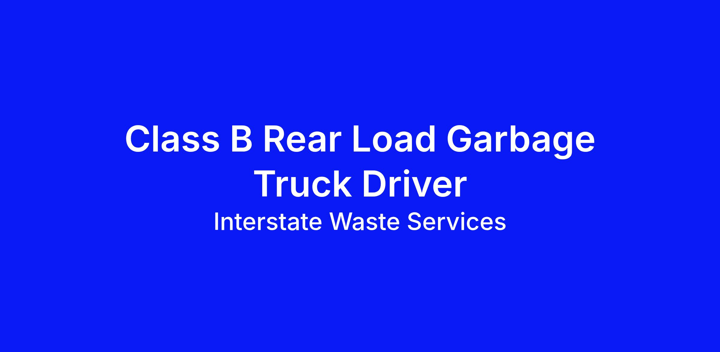 Interstate Waste Services is Now Hiring CDL B Rear Load Truck Drivers!