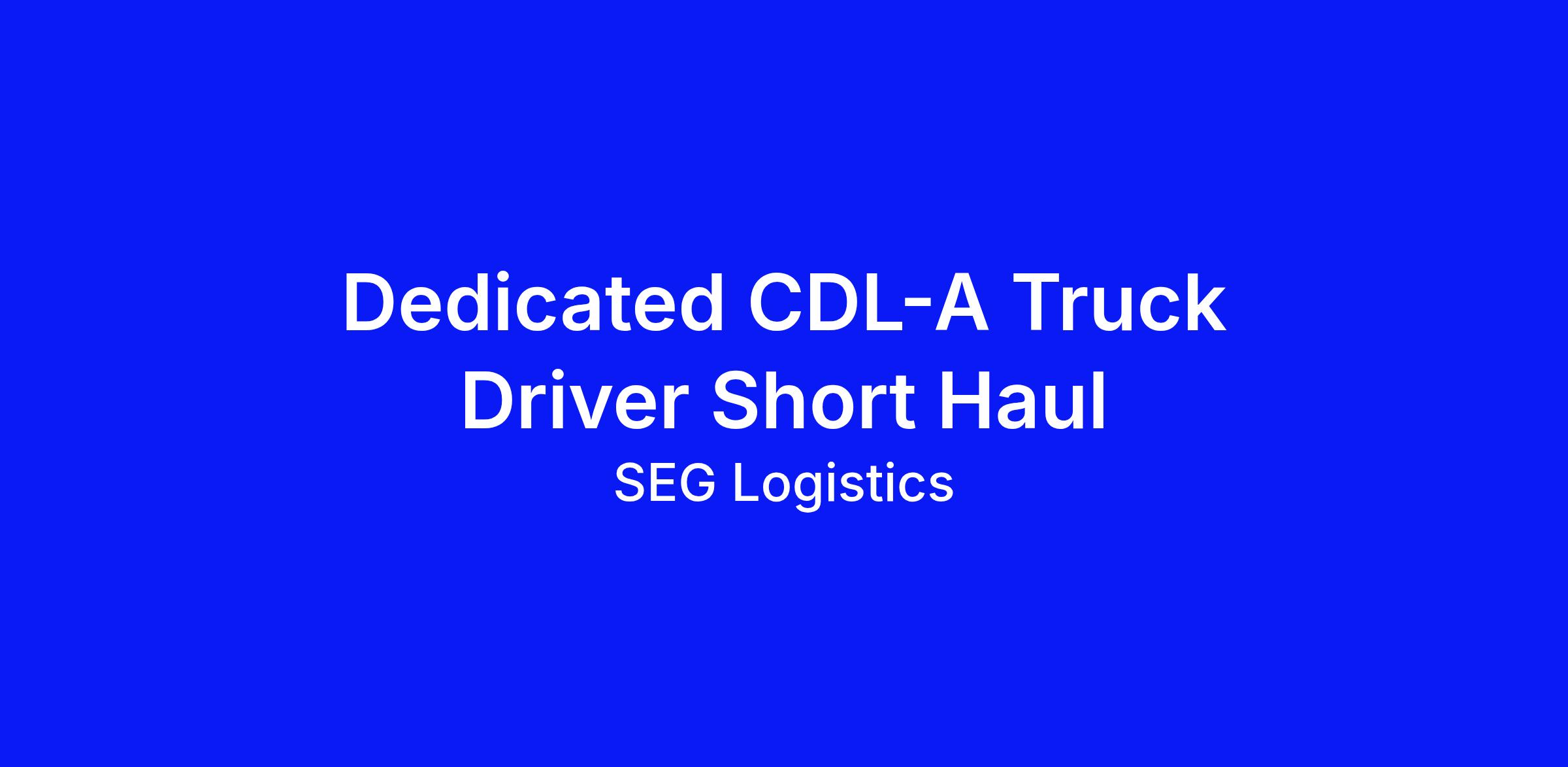 Dedicated CDL-A Truck Driver Short Haul