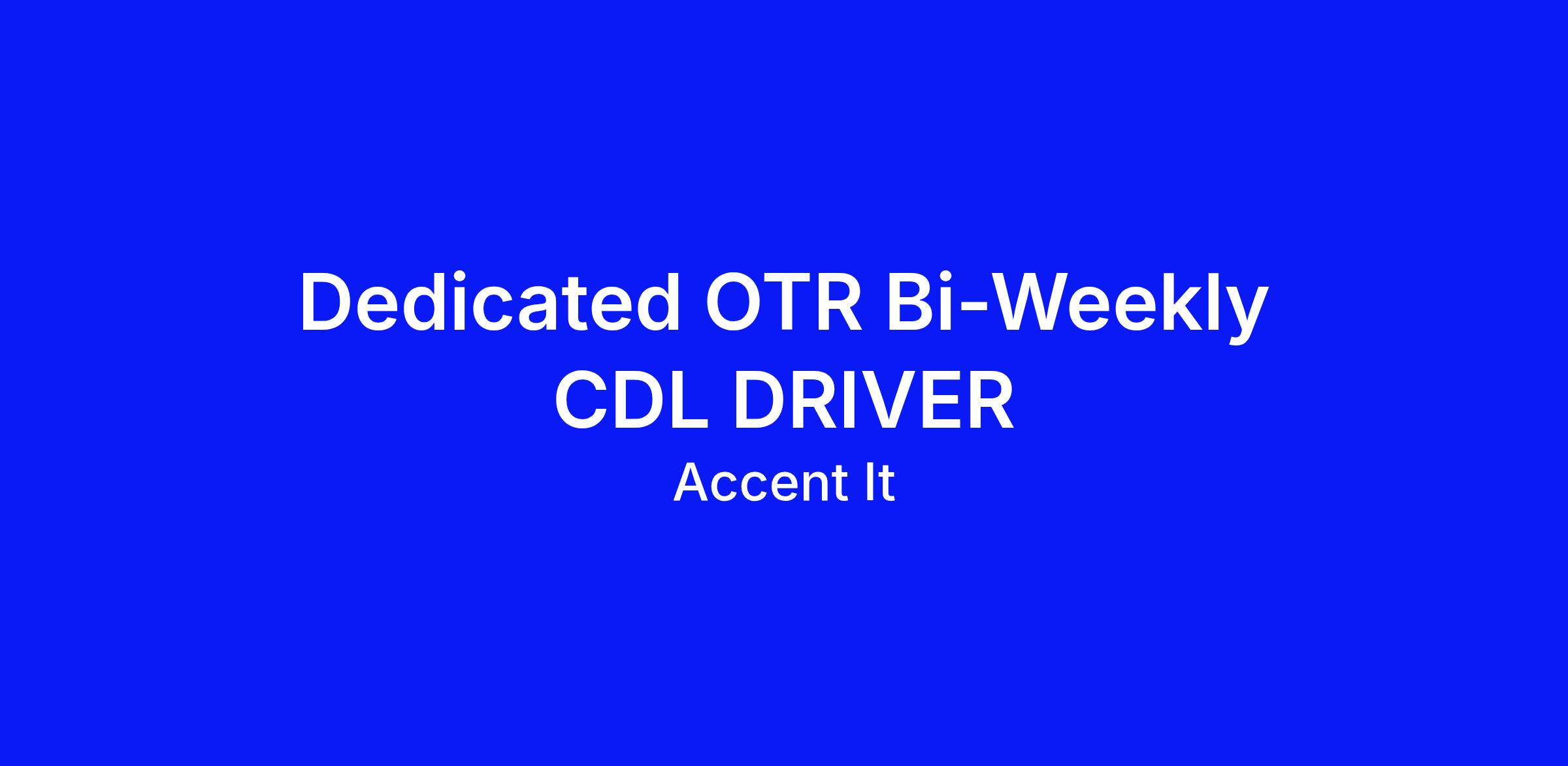 OTR Home Bi-Weekly CLASS-A DRIVING POSITION!