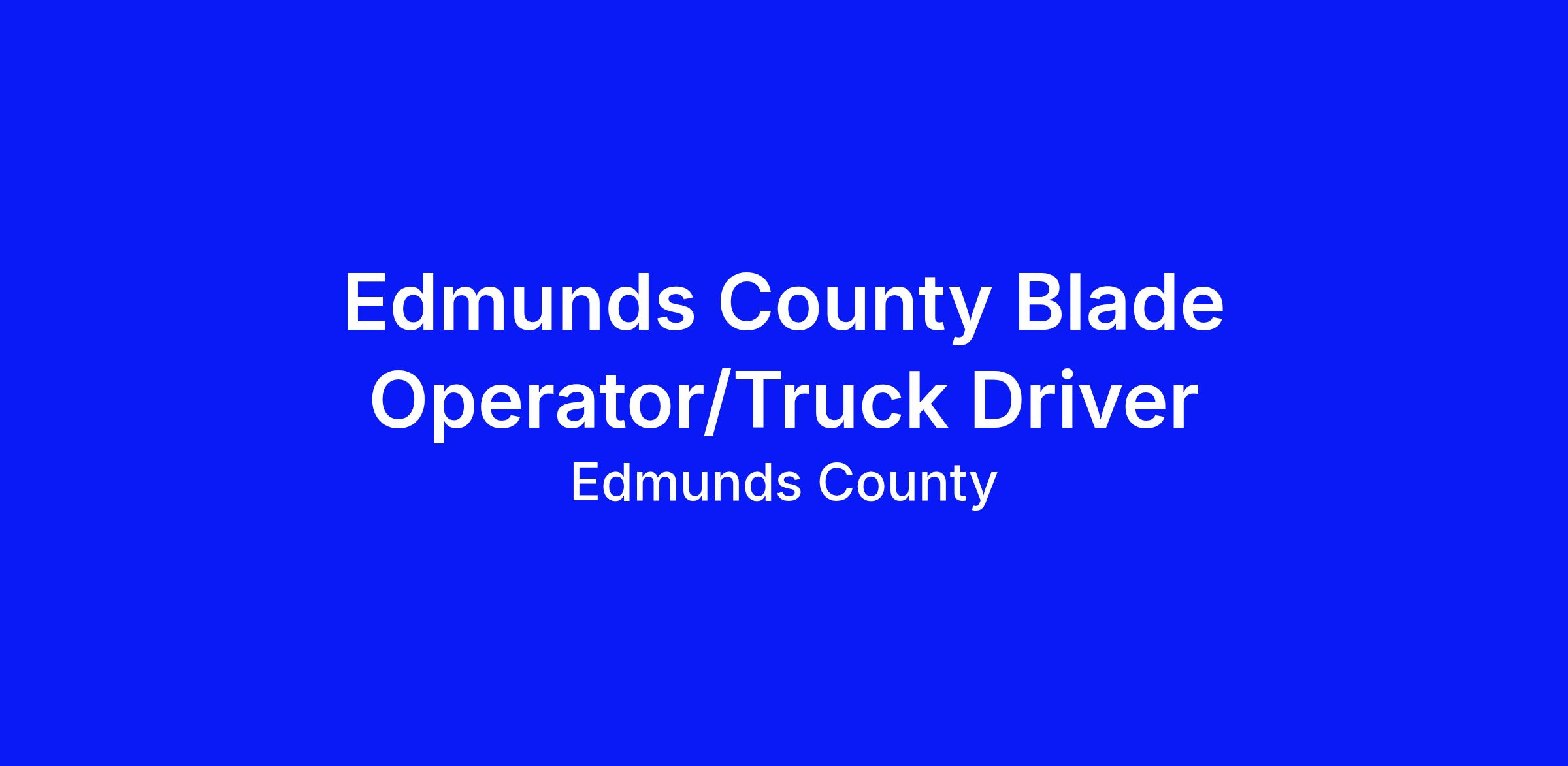 The County of Edmunds is seeking a responsible individual for the full-time position of Highway Blade Operator/ Truck driver. This individual will report to the Edmunds County Highway Superintendent and work out of assigned area. Individuals will be responsible for and able to maintain roads, and other county property by the operation of maintainers, tandem trucks, material spreader, front-end loaders, sweepers, rollers, packers and oil distributors for road maintenance and repair. Trucks will be hauling materials such as gravel and hot mix. Candidate must have possession of or ability to obtain SD commercial driver’s license (CDL), with special endorsements as required for jobs. Edmunds county is offering CDL reimbursement options. Salary is $24.16-$24.66 per hour and includes benefit package. Employment is conditional upon a drug/alcohol test. Interested individuals are encouraged to submit an application or resume to the Edmunds County Highway Department, PO Box 38, Ipswich SD 57451 or via email, found on the county website – edmunds.sdcounties.org. The County of Edmunds is an Equal Opportunity Employer.