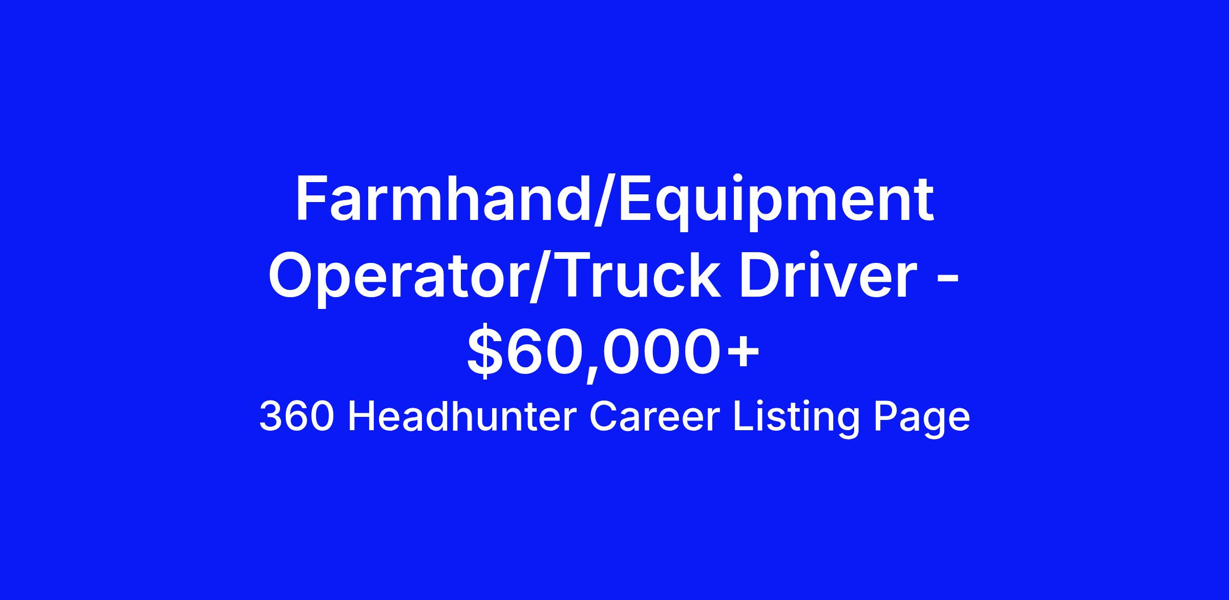 Large and well respected farm operation in Northern South Dakota is in need of a reliable, dependable farm employee. This person will start with basic equipment operation and truck driving, a good background with Class A CDL or ability to obtain one is important. Equipment is new, facilities and farm is clean and employees/farmhands are top priority to the success of the operation. Pay will be hourly or salary with some benefits and bonus potential too. Looking to hire the right person immediately. This is a rare opening on this type of row crop farm.