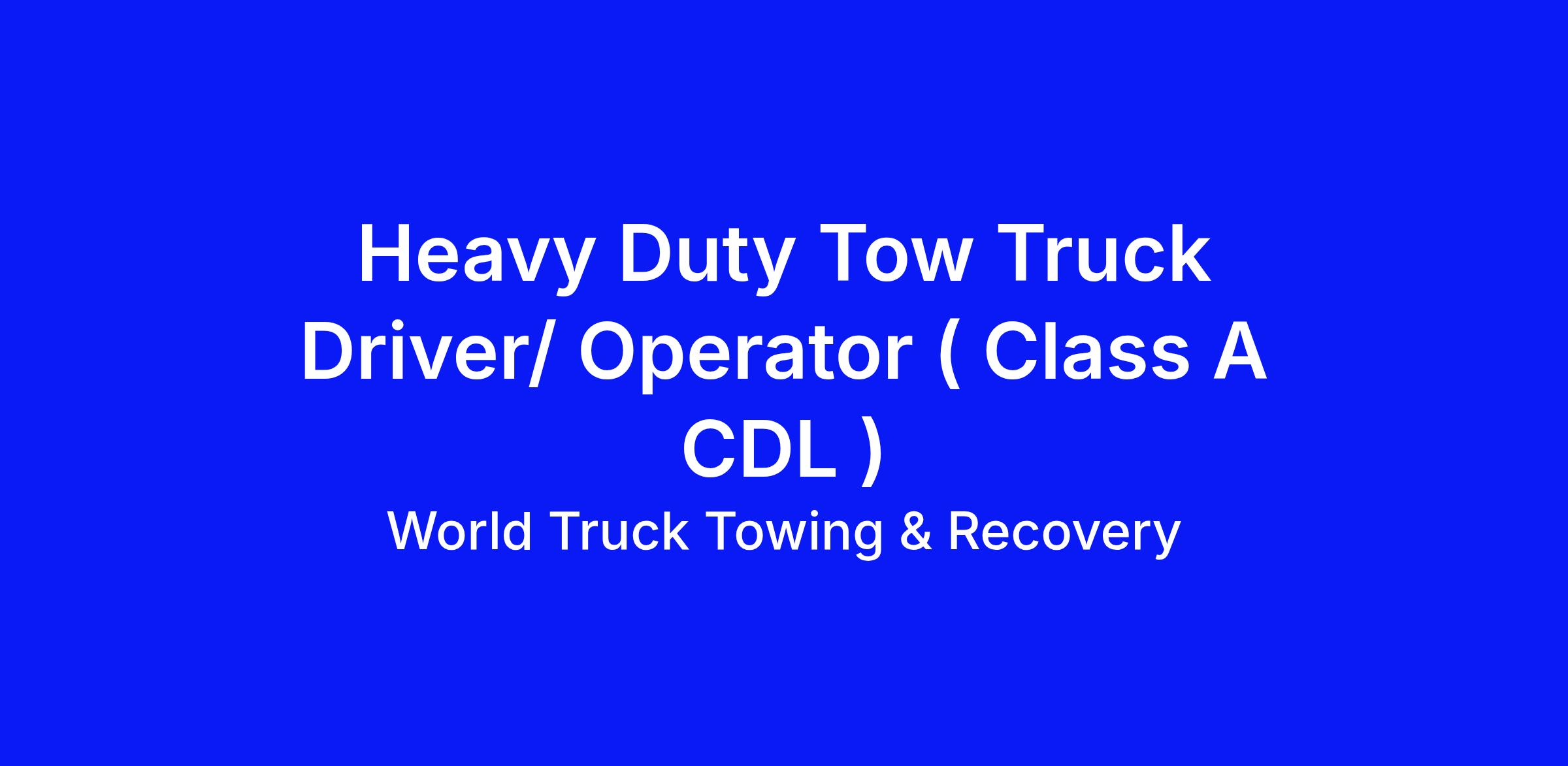 Heavy Duty Tow Truck Driver/ Operator ( Class A CDL )