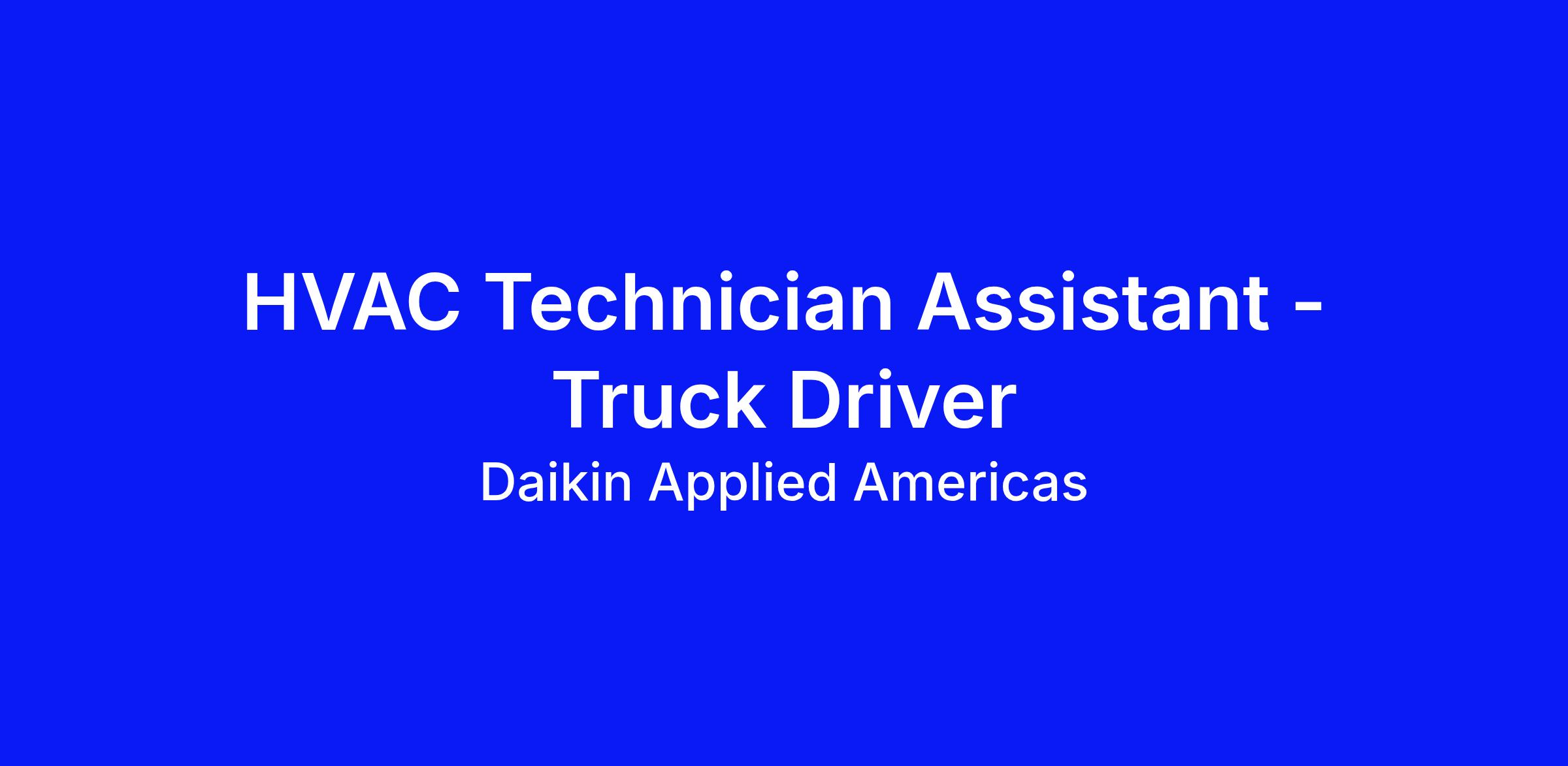 Daikin Applied is seeking a HVAC Technician Assistant - Truck Driver. In this role, you will be assisting in the diagnosing, repairing, and performing preventative maintenance for commercial and industrial HVAC equipment. The responsibilities will increase based on exposure to tasks, ability to develop troubleshooting skill set, and consistent and accurate completion of assignments. The HVAC equipment you will be servicing includes but is not limited to large and small rooftop units, split systems, chillers, and boilers. Come be a part of an exciting journey at Daikin Applied, where innovation and excellence drive our every endeavor!