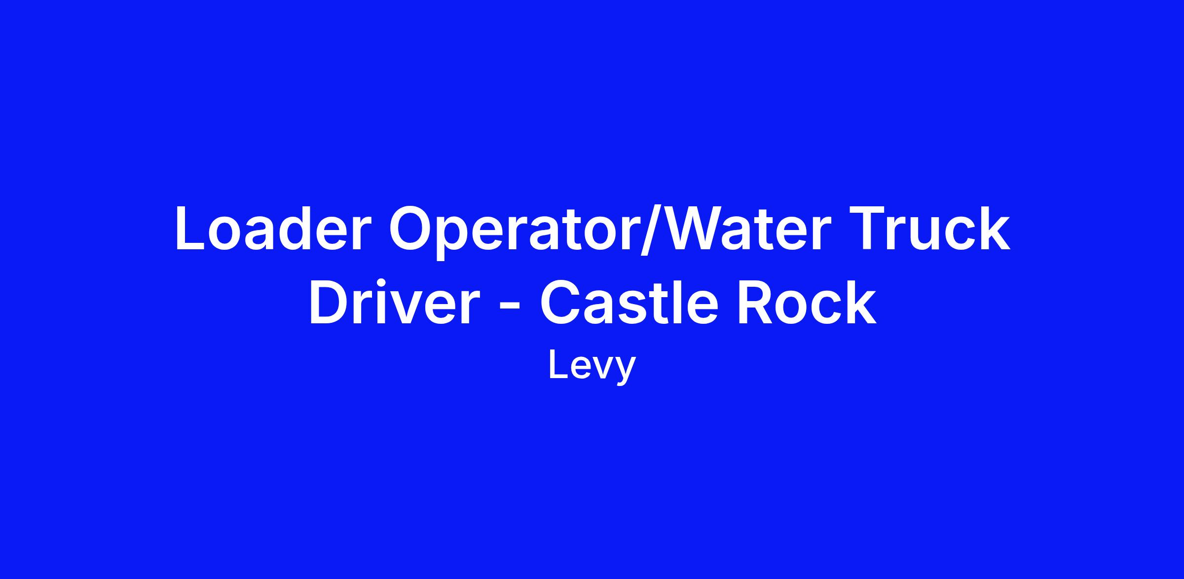 DescriptionSchmidt Construction part of the Levy Group of Companies is seeking a Loader Operator/Water Truck Driver to work at our Castle Rock, CO location. The Loader Operator/Water Truck Driver is responsible for operating a loader to load and unload trucks, supply raw materials to bins and hoppers, and manage stockpiles, as well as operating a water truck to perform dust suppression in accordance with customer requirements and environmental regulations.