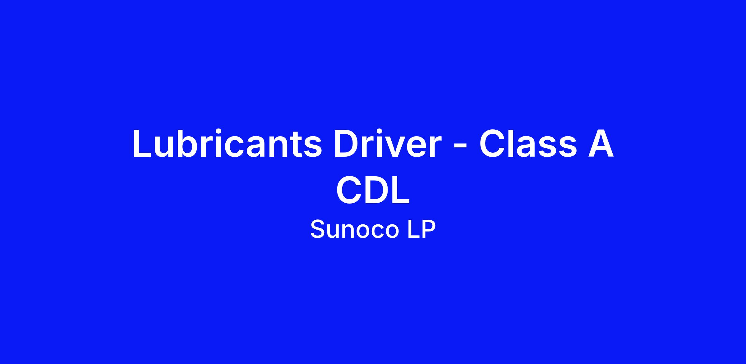 Position Title: Lubricants Driver - Class A CDL